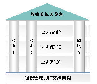 流程为纲:流程帮助企业解决“正确地做事”的问题,它既是企业知识具体的依附主体,也是被知识能动改善的客观对象。因此,不能脱离企业的具体业务来单单谈知识管理,知识管理从本质上来说就是业务工作的一部分,它将越来沿着行业纵深、结合业务进行深入应用,从传统的办公自动化、文档管理等技术层面的内容,结合各行业的特点和不同的业务领域,向业务导向型知识管理方向发展。 知识为体:我们经常发现这样一种现象:很多企业做了管理规范化的工作,更有些企业做了流程管理和优化的项目,但是往往结果也并不是很理想。为什么呢?很简单的一个事实:同样的一个流程,都是从a到b再到c,但往往不同企业、甚至同一企业的不同人执行起来效果是不一样的,原因是什么?还在于a、b、c每个执行环节背后蕴涵的知识语境。通过流程梳理,通常可以保证从a到b再到c这样的逻辑关系是合理的、优化的,它解决了横向的信息流,但并不能保证a、b、c每个环节都得到高质量的执行,因为这其中需要高质量的纵向知识流的支撑。流程的每个环节已经有了哪些知识,还需要发展什么知识,则是需要结合业务流程来详细梳理和分析的,这就是知识为纲。