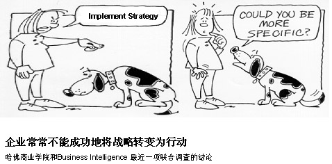 看过一幅漫画(图2),是哈佛商业学院和Business Intelligence最近所做的一项联合调查的结论:企业常常不能成功地将战略转变为行动。