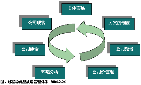 (一)公司现状——我们在哪里 过程导向的战略管理第一步是对当前的实际状况进行分析。 具体任务是,正确的界定公司当前业务以及业务领域,然后在可靠、可行的基础上准备建立变化的流程,为下一步使命的制定提供帮助。我们可以用不同的方法来分析和确定公司目前的状况,建议考虑的因素包括市场反映、产品组合、财务、技术水平、当前客户结构等相关因素。 对公司目前状况分析的目标是画出公司存在业务的详细图表,越具体越好。 当公司的业务领域明确界定后,关于竞争者的市场地位分析以及公司相对于竞争者的比较分析将会展开。公司应该在搜索并分析有关市场领先者、相关的技术、技术领先者、生产力领先者的详细资料后得出结论,公司应该判断自己是否已经处于本行业的核心企业之列。 从外部的角度分析公司的发展状况是必须做的,尤其是从客户的角度分析自己,可以得知自己的不足与差距,究竟哪些方面还没有满足客户的需求。这样的一种外部分析方法能够使公司对市场、竞争者以及技术的分析简单化、客观化。 (二)公司的使命——做什么 在市场定位完成后,公司应该初步建立企业的业务目标,究竟客户需要什么?我们如何满足客户的需求?对于公司业务目标的描述应当力求具体、言简意赅,最后完成一份公司使命的陈述资料。这套公司使命的描述文件应该清楚的表述出业务范围,让它作为公司员工行动的向导,告诉企业和员工哪些事情是必须做的,那些事情能够做、那些事情不能够做,我们现在有哪些业务、哪些业务我们还没有开展。 (三)环境分析——天时地利人和