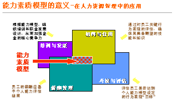 五、胜任能力模型在人力资源管理中的应用 基于胜任能力模型的人力资源管理,无论在理念还是在方法方面,都有别于通常的人力资源管理。下面从四个方面来阐述胜任能力模型在人力资源管理中的应用。 第一、胜任能力模型在招聘与任用中应用