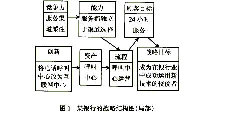 战略管理是对战略进行分析、制定、评价、实施和控制的过程。战略分析包括使命与目标分析、环境和资源分析、产业结构分析和SWOT分析等。根据战略分析的结果制定和实施战略,在战略实施的过程中,对战略进行控制。Mintzberg强调将战略制定与战略实施分开,而描述性战略管理思想则强调战略制定与战略实施的衔接和相互作用。 由Hamel和Prahalad提出的战略结构概念是公司根据其使命和愿景将其现有的核心竞争力转化为未来竞争优势的一种战略制定过程,而关键成功要素方法以及由诺顿和卡普兰提出的平衡计分卡方法则是进行战略控制和评价的有效工具。国内有关战略结构的文献比较少,对其介绍也仅限于概念性阐释,并未对其运用进行详尽的论述;关于平衡计分卡的研究文献很多,对这一方法的介绍也比较全面和深入,但国内对其应用的研究主要集中在绩效衡量和考评方面,对于平衡计分卡在战略控制和评价中的运用研究较少;并且过去的文献过于强调平衡计分卡的平衡理念,忽略了其不平衡性。本文详细介绍了运用战略结构概念制定战略的一般思路,对运用平衡计分卡和关键成功要素方法进行战略实施和控制进行了深入的研究和探讨,提出了二者在战略控制制定的管理模型;从平衡计分卡的“不平衡”理念出发,根据不同战略模式的战略控制重点的不同,建立了战略模式与平衡计分卡四个方面之间的对应关系模型;提出了平衡计分卡和关键成功要素方法在战略控制中的整合模型,从而建立了从运用战略结构制定战略到运用平衡计分卡和关键成功要素方法进行战略控制的一般模式。 一、战略结构与战略制定 由于世界经济一体化、知识经济和信息技术的飞速发展,企业所面临的竞争环境具有高度的复杂性、不确定性和突变性。因此,竞争战略的制定不能再局限于公司管理金字塔的塔尖,而要广泛吸收公司内各层人员的积极参与,要具有前瞻性和动态性,不能仅仅局限于当前的市场和现有的资源,要面向未来,以变化为导向,不仅要对目前的经营环境做出反应,而且要能够预测环境的变化,发现和抓住未来的市场机会,不断拓展竞争空间。 战略结构(Strategic Architecture)是Hamel和Prahal ad为了制定战略而提出来的概念,他们把公司将其现有的核心竞争力转换成未来竞争优势的战略制定过程称为战略结构。设计战略结构的目的不是要在眼前的市场上实现收益或股东权益最大化,而是要通过识别和整合现有的竞争力,捕捉未来市场机会,为将来实现收益最大化做准备。战略结构是一个广泛的机会和路线计划,它描绘了公司迈向未来竞争目标的路线图,这些目标也许在未来的几年内也难以实现。战略结构不仅提出了公司未来要实现的宏伟目标,而且要提供达到这些目标的路径。 运用战略结构制定公司战略的前提是确定公司目标。公司目标可以分为资源目标(Resource Objects)、行为目标(Action Objects)和动机目标(Intent Objects)。资源目标是公司在某种战略模式下运营的能力和资源,包括竞争力目标、能力目标和战略资产目标。竞争力是公司内可识别的各种技能和技术的集合,它反映了公司的集体学习能力。能力是有助于公司战略实现的过程、活动、任务、技术等的有机组合,是战略性的组织运作过程的集合。战略资产包括有形资产和无形资产。Collis和Montgomery认为公司的有形资产和无形资产均可发挥战略性的关键作用。 活动目标包括战略创新活动和经营流程。战略创新活动是指为实现战略运作而进行的引导性项目和活动,流程则是指运用公司资源为顾客创造利益的企业经营活动,是构成顾客价值链的各种活动的有序组合。为获取竞争优势,这些活动要么不同于竞争对手,要么以更有效的方式来组织。 动机目标体现了战略结构所期望的结果,它包括顾客价值取向目标(Customer Value Proposition)、经济价值取向目标(Economic Value Proposition)和战略价值取向目标(Stratepc Value Proposition)。顾客价值取向是隐藏在顾客购买行为背后的动机。为了建立战略结构,必须清楚顾客在为何种价值掏腰包。经济价值是指预期能够增加股东财富的某种特定结果。公司不仅要关心产品的市场份额与增长,而且必须为股东创造价值。战略动机(Strategic Intent)的概念是Hamel和Prahalad于1989年提出来的。它是公司的非对称战略竞争目标,隐藏于战略背后,贯串于公司文化和经营全过程,作为一个动机性因素发挥作用。战略动机取向目标简明扼要地提出了公司在既定的竞争市场中的定位,阐释了公司的战略动机,反映了公司战略动机的结果。 目标界定之后,即可建立战略结构。建立战略结构的目的就在于创造一个能够将公司现有的竞争力转化为它所期望的能在未来市场上实现的外部价值目标的路线图。图1就是某银行的战略结构图(局部)。
