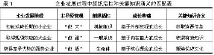 基于知识管理的企业活力观点认为,导致企业竞争活力差异的根本源泉是企业的组织能力与企业特定资产互动过程中积累的核心知识,企业中具有内生性的知识和能力与企业的产品发展处在一个共同演进(co-evolution)的模型之中(Helfat,2000)。本文提出企业发展过程中组织活性和关键知识涵义的一个匹配表(如表1所示)。