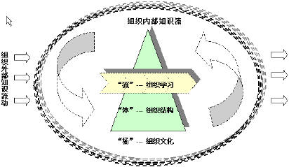 (2) “流”——组织学习。组织学习是知识型企业中最重要的组织流程。组织学习既是企业创造与共享内部知识的有效途径,也是企业吸收外部先进知识的关键环节。对于组织学习的外部动因、内在机理,以及实践工具等方面的研究与应用,已经成为知识管理中最具有理论创新意义的领域之一(迪尔科斯,2001)。