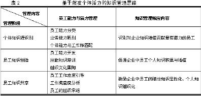 员工是企业知识的基本载体,组织行为理论中的个体行为原理赋予知识管理以新的含义。基于个体能力理论的知识管理的基本思路应该是(如表2所示):
