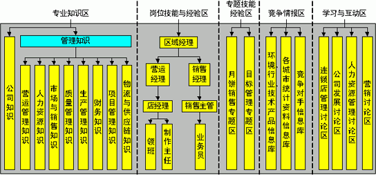 ◇ 专业知识功能模块 在分析公司的战略方针的基础上,对关键岗位进行工作分析。找出关键岗位要充分实现其职能所需要的专业知识。然后再对专业知识进行提炼、归纳、总结与筛选,形成关键岗位的专业知识。员工可以通过系统地学习专业知识,获得在知识上的提高。 ◇ 岗位技能与经验模块 岗位技能模块中,又分为两个小的模块。一个模块是岗位技能区、一个是专题技能经验区。对岗位技能的挖掘,也就是对公司隐性知识的挖掘,通过对重要岗位的绩效优秀者的技能进行挖掘,为员工树立绩效标杆,同时告诉员工实现优秀绩效的途径与方法,模块主要是针对岗位。专题技能经验模块是针对公司有影响的重大事件,将重大事件中的过程中的得失总结出来,让重大事件中所得到的经验变为组织记忆。 ◇ 竞争情报模块 竞争情报模块是为了有效跟踪竞争对手,为好利来公司总部、各个城市公司提供决策支持而设置的。公司负责竞争情报的市场部门可以通过得到每个城市所搜集到的竞争对手的动向,经过加工与处理后,分析、研究竞争对手,为全公司的决策做支持。同时,由向每个城市提供市场部门的研究、分析成果。 ◇ 学习与互相动模块 在知识管理中,员工之间的互动交流中,对工作中所遇到的问题深入探讨,产生新的火花。员工通过对专业知识与技能的学习,在互动区域内展开讨论,还可以通过员工交流区向同事请教,总结、发表自己在工作中的心得。 运用上述四个功能模块,实现了好利来知识管理的功能,通过将专业知识、岗位技能的学习与员工的任职资格体系相结合,使对专业知识与岗位技能的学习、掌握与员工的晋升、调薪相结合,就可以实现员工激励,将企业的目标、利益与员工的个人目标、利益在一定程度上结合起来;通过对岗位技能的挖掘,将实现优秀绩效的技能挖掘出来,员工通过学习优秀技能,提高工作绩效,将绩效管理与知识管理有机的结合起来。同时定期对知识的更新、技能进行挖掘,将公司的发展战略与知识管理相结合起来,使员工所学习的知识与技能始终支持公司战略的发展。 好利来知识管理对企业的借鉴作用 好利来公司内部引入知识管理,将潜在的、分散的技能开发出来,进行有效的传播非常有必要的。好利来公司在建立知识管理系统时候,也遇到很多问题,而且这些问题都是有普遍意义的问题。 ◇ 知识管理必须结合员工的绩效管理 知识管理的目标就是通过对知识的挖掘、开发与共享,最终实现员工绩效的提高。企业不是学校,企业对员工培训、学习的投入都需要从业绩上得到回报,只有切实提高员工的绩效,知识管理的投资对于企业来说才是有意义的。