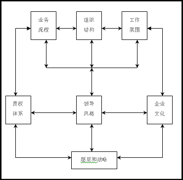 图1 价值观塑造的硬环境和软环境 一、愿景和战略 1、愿景 愿景,是人的一种意愿的表达,这种意愿的表达需要有良好的知识准备并且具有前瞻性。它可以告诉我们为什么一个企业需要存在,这个企业存在的目的和理由;一个富于识见的愿景会反映出那些正影响、改变企业所处的环境的变化趋势;愿景也许并不能反映出企业正存在的弱点,但是愿景应当能够反映出企业自身的期望,希望企业能变成什么样;一个清晰的愿景总是能够让每一个人知道企业将向什么方向前进;愿景具有高度特异性,这种特异性源自企业本身。每个企业都有其精神内核和灵魂,不管其有没有写到纸上,挂在嘴边。每个企业都会有这样一种个性,一个企业的愿景不可避免地反映了这个企业的个性,最广泛地反映出一个企业的“核心价值”。 愿景可以团结人:我们来到这个企业有一个共同的原因,唯一让我们来这个地方工作的原因就是我们有着相同的价值观和共同的目标。 愿景可以激励人:随着时间的推移,一个企业的价值观以及这个企业的目标就变得越来越重要,特别是对那些最优秀的人们,这些人能在你的企业中创造出最大的不同;如果人们相信他们所做的事是值得的,如果他们相信能够通过自己在企业中的工作完成一些他们值得花费实践和精力去做的事——一些他们自己无法做成的事,那么他们就会更加积极。没有什么比一种清晰的愿景更能吸引和留住人才,特别是当一个企业正实践其愿景以实现其目标时,可能特别是在最大的企业之中,一个清晰的愿景、一个明确的目标,可以成为不断促进和激励人的因素。 共同愿景实质上是企业共享价值观在组织目标、组织使命等方面的具体化,全体成员共同景象是建立在共享价值观基础之上的。没有共享价值观,组织成员奋斗的目标与方向必然难以统一,领导提出的“愿景”也必然流于形式、局限于一幅虚幻的图景。 2、战略 企业的文化影响企业的战略决策,企业价值观是企业领导者和全体员工对企业的生产经营活动和企业人的行为是否有价值及价值大小的总看法与根本观点。企业价值观指引企业前进的方向,并提供评价工作好坏的标准。企业价值观决定企业的个性,使企业具有自己的独特风格与面貌。紧紧围绕价值观制定战略,这样才会有战略的认可和战略的顺利执行。企业的战略规划和重大问题的决策与企业的价值观紧密联系。围绕核心价值观的发展战略制定后,不能只停留在企业高层管理者和战略研究人员层面上,而应该让执行战略的所有人员都能够了解企业的整个战略意图,并使员工认同企业的发展战略。利用共享价值观这条精神纽带团结所有的员工,使这条纽带具有导向、约束、激励、凝聚及辐射作用,从而激发全体员工的热情,统一企业成员的意志和欲望,齐心协力地为实现企业战略目标而努力。 在决策方面,领导更加注重决策的速度和适当的授权。如果企业共享价值观形成,它就成为决策的标准,在任何重大问题上决策者都能够按照企业共同价值标准迅速做出利弊判断。领导者鼓励自我管理与自我激励,企业所有员工都思考企业的未来,人人都允许在紧急情况下做决策,人人都勇于承担责任。二、组织结构 传统技术与权力基础上的企业管理强调分工,组织结构以细的部门分工为基础,形成金字塔式、自上而下、递阶控制的管理组织形式。随着科技的发展,这种结构由于存在对外界环境变化响应迟缓和压抑组织成员全面发展等弊端,越来越无法适应新经济时代中企业管理的需要。 “局部分工,整体集成”的管理新思维带来了组织的变革,这种组织的变革要求组织管理方式能够突破传统管理幅度的限制,以核心价值观为纽带,充分满足企业组织智能、扁平、柔性、敏捷等要求,组织成员无摩擦地在组织内部流动、合作,积极适应新经济时代的柔性化要求。在共同价值观的指导下,全体组织成员合作进取、风险共担、功能放大。 此时,组织的特点是:精简敏捷,即组织结构流畅,可以快速适应市场动态。在企业内部营造一种文化——让人们能够快速前进、更清楚地与别人沟通,让员工能够同心协力服务具有多元化需求的客户。 杰克•韦尔奇提出“无边界组织”的概念,寻求的是减少命令链,对控制跨度不加以限制,取消各种职能部门,代之以授权的团队。面对庞大的公司机构,通过“无边界组织”减少公司内部的垂直界限和水平界限,消除公司的内部障碍以及客户和供应商之间的外部障碍。更重要的是重新定义老板与下属之间的关系:基于共享价值观念,破除等级制度,上司和下属是功能交错的团队;不再有管理者,取而代之的是企业的领导者;员工不再只是听命行事,他们将被赋予权力与义务。 想达到这种组织状态,具体措施有: 取消组织垂直壁垒: 压缩垂直型管理层;引入跨等级团队(由高级主管、中级主管、基层主管和员工组成);让员工参与决策;360度绩效评估。 取消组织水平壁垒: 由于水平壁垒是由职能部门之间、公司与供应商以及公司与顾客之间形成的,因此,消除组织水平壁垒的方法是取消、合并一些部门,以多功能团队取代职能性部门,围绕公司的工作流程来组织活动。 取消外部界限: 实行公司间的战略联盟,建立顾客与组织之间的固定联系。 三、业务流程 业务流程是为特定顾客或市场提供特定产品或服务而实施的一系列精心设