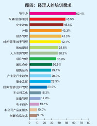 一项全面、深入的调查,发现经理人的培训需求和有效培训的要素。 Lan Liu 世界经理人网站举办的"中国经理人培训现状调查"在2004年7月底至8月初举行。该调查通过电子邮件进行,收到的有效问卷为1,246份。 通过这次调查,我们发现: ●在过去一年中,中国经理人在积极地接受培训:超过九成半的经理人参加过各种各样的培训;近八成半的经理人接受过公司提供或资助的培训;平均每个经理人花在培训上的费用为13,101元人民币。 ●经理人最急需的六大类培训是领导力、沟通/演讲/谈判、企业战略、外语、财务管理、时间管理/效率管理。 ● "案例分析"被超过九成的经理人认同为使培训有效的要素。 ●最受欢迎的五大类培训课程为领导力、人力资源、MBA(含EMBA)、沟通/演讲/谈判和项目管理。 参加者:经理人 要点: ●约1/3的受调查者来自民营企业,约1/2的受调查者来自外资或合资企业 ●约1/2的受调查者为企业的中层经理,超出1/3的受调查者为决策者及高层经理,约1/6为基层经理 ●接近4成的受调查者的企业工作经验在5年以下,超过3成的受调查者的企业工作经验在10年以上 在1,246名有效问卷的提交者中,来自外资独资企业占29.1%;来自中外合资企业占17.6%;来自国营企业占14.5%;来自民营企业占32.3%;来自其它性质企业的占6.5%。可以看到,外资企业与合资企业合在一起,与国营企业和民营企业合在一起,基本上各占一半天下。 其中,属于"决策层、高层经理人"的占35.6%;属于"中层经理"占49.0%;属于"基层经理"的有192人,占15.4%(见图一)。可以看到,绝大多数是企业中的中高层经理人。 因为本调查针对企业经理人进行,因此来自普通员工的问卷被视为无效问卷没有加入统计。 这些经理人拥有的企业(包括所有工作过的企业)工作经验是:2年以下的占10.3%;2年至5年以下的占26.5%;5年至10年以下的占31.9%;10年以上的占31.4%。 可以看到,大部分经理人拥有5年以上的企业工作经验。