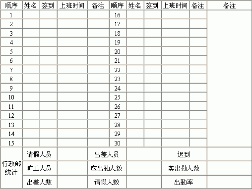 | 员工签到卡 | |||||