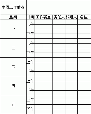 部门: 年 月 日至 年 月 日 审核: 拟定: 注:部门周工作计划由部门负责人审核。公司总计划由行政人事部制作,总经理审核。 张三 武汉科技大学,工程管理 助理人力资源管理师 深圳市***有限公司 人力资源部经理 邮箱:zhansan@yahoo.com.cn