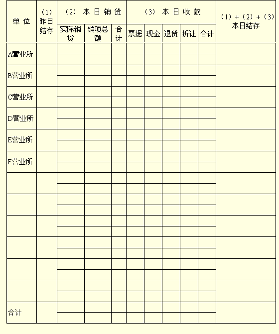 *本日销货栏及本日收款栏 :上半栏填当日销货金额,下半栏填当月累计金额。