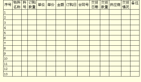 物资订购记录单
