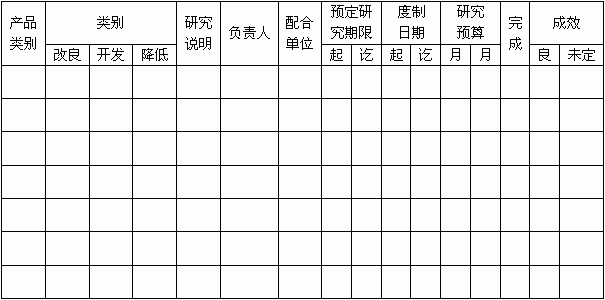 新产品研制计划表