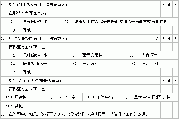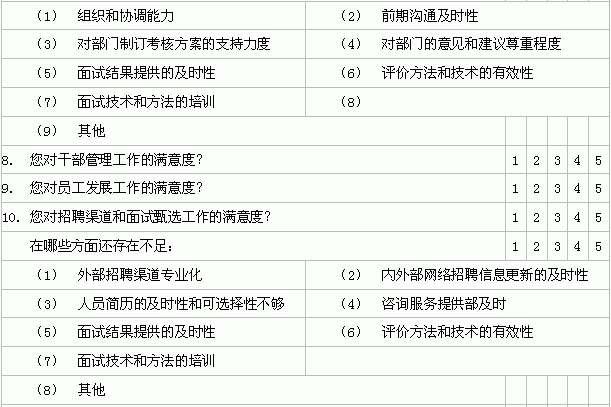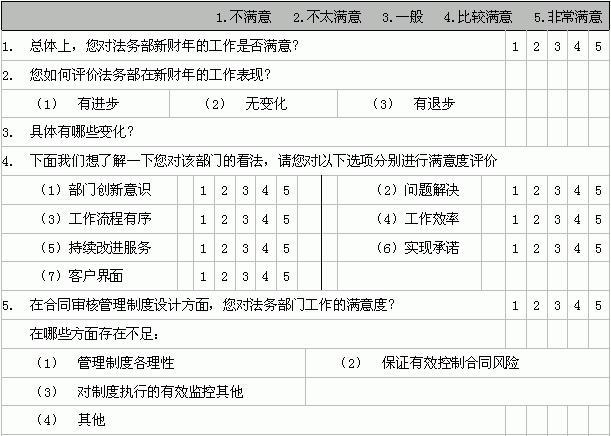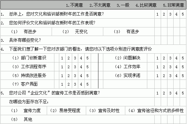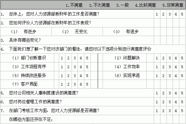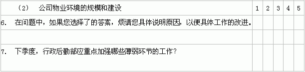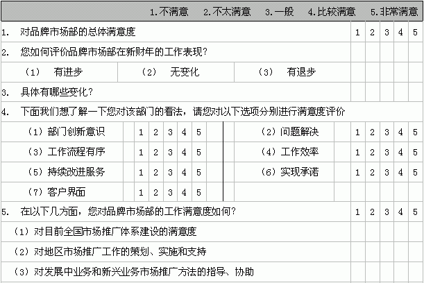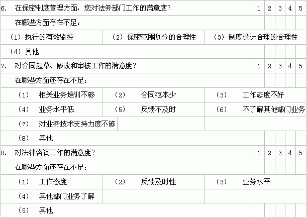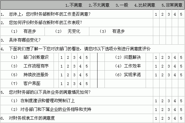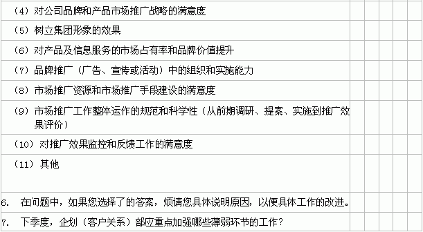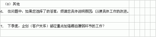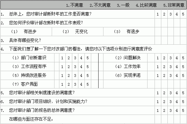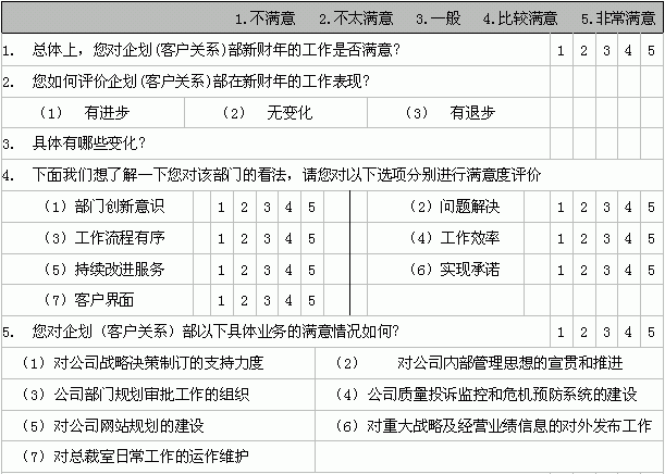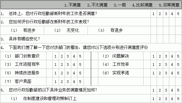 | 内部客户满意度调查问卷部门经理用 | |||||
