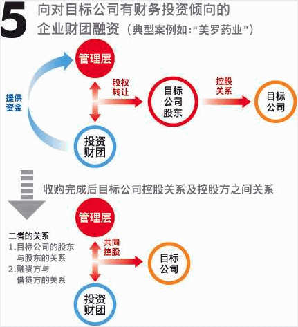 融资设计是MBO中最重要的环节,在目前国内的融资市场远未成熟和规范的前提下,国内的融资设计和国外差别很大。目前国内MBO的融资方式主要有五种,如下页图。 |