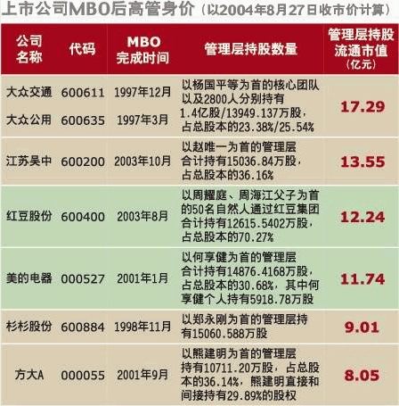 其实,自1998年四通集团改制打响中国MBO第一枪后,MBO就在国内受到广泛的关注和异议,其中尤以多具有国资背景的上市公司MBO为甚。可以说,国内上市公司的MBO操作一直是如履薄冰(上市公司MBO案例见附表“部分A股上市公司MBO案例一览表”)。 而在以上MBO的案例中,一个值得关注的现象就是其几乎都是在“沉默中操作”,外界一般都是在其大功告成之际才恍然大悟。其原因正所谓“南橘北枳”:MBO在国外仅仅是一个普通的购并手段;而在中国则兼具有国企改革和财富的双重光芒,这或许也是国内MBO所不能承受之重。而对国内MBO的种种争论也几乎是以此为焦点。 首先,MBO作为国有企业产权多元化改革的一种方式,在实际操作过程中确已出现了大量的国有财富通过暗箱操作、以较低的价格被出售、以非正常的方式快速地向私人移动的现象。专家认为,产权改革是一道绕不过的弯,但所有制问题是所有社会主义国家经济体制改革中风险最大的环节。如果没有健全的制度来约束,中国的管理层收购可能会成为一场灾难。这种灾难是有历史教训的。如俄罗斯的"隐性私有化",国有资产原来谁在管理就归谁占有,结果1991年开始的转轨,不过是对已经形成的利益集团的承认。通过俄式MBO,俄罗斯实际价值超过1万亿美元的500家大型国企,只卖了72亿美元。 其次,MBO在具体操作也存在着三个焦点问题:一是国有资产的转让定价问题,二是收购者收购国有资产的资金来源问题,三是操作过程中的不透明和事先不公开性,产生了不公平。因此,国内相当一部分学者认为,在国有资产监管角色尚未完全到位,MBO相关的法律制度不健全的情况下,不宜大规模实行管理层收购。 2003年3月,财政部在发至原国家经贸委企业司关于《国有企业改革有关问题的复函》(财企便函[2003]9号)文件中建议:在相关法规制度未完善之前,对采取管理层收购(包括上市和非上市公司)的行为予以暂停受理和审批,待有关部门研究提出相关措施后再作决定。虽然这不属于正式文件,但这个便函中所传递的态度与信号还是为如火如荼的MBO热浪泼了一瓢冷水,众多运作MBO的企业由于牵涉到国有股权转让问题而无法获得国有资产监管部门的批准。 但也有业内人士从中得出了另一种政策信息,认为实际上暂停只是对部分不符合政策的MBO企业的暂停,而纳入政府监管框架内的MBO将拥有持续发展空间。其实,十六大以后,国内经济界就普遍认定国企改革将有大动作,管理层收购正在成为与外资并购、民营企业收购国有企业并列的三大"国退民进"方式。目前,我国大约13万亿元的国有资产中的相当一部分急需盘活、增效,过去是土地换发展,今后将是产权换发展,这是一种趋势。同时,统计表明,我国上市公司管理层持股的比例仅为0.017%,而美国上市公司的管理层或称CEO们的平均持股比例已经高达2.7%,这说明在我国实施MBO还是有一定空间的。 而从目前多家上市公司曲线MBO的获批,再结合7月20日宝钢建设MBO的高调进行,国内MBO资深人士、上海荣正投资咨询公司董事长郑培敏据此认为,这透露出中央和地方政府对合理、合法的MBO的支持态度,表明国内MBO在政策上已经出现松动迹象(详见附文"政策出现松动迹象")。他同时指出,对MBO的认识要理性,MBO只是国企业改革的手段之一,而不是一帖"包治百病"的灵丹妙药;MBO案例将会逐渐增多,但在短期内难成为主流。 业内人士认为,政策上的松动使人们有理由相信, MBO这一创富运动又将开展起来。相比于中国1984年进行城市体制改革以来出现的承包国企、价格双轨制、"零价格"收购国企等几个暴富阶段而言,MBO所制造的全部是中国顶级富豪,其中最让人叹为观止的当属"TCL集团"(000100)的MBO。