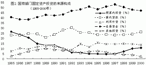 说明:单样本T检验;双侧检验,95%置信度。 需要说明的是,这516户国有工业企业中,大型企业有165户,占32.0%,中型企业有280户,占54.3%,小型企业有71户,占13.8%;大中型企业合计占样本中国有企业总数的76.3%。显然,这个样本在企业规模结构上明显偏向大中型企业,而这类企业中的国家资本比率一般应高于小型国有企业。所以,可以进一步推断,在全国的国有工业企业整体中,平均国家资本比率只会比上述推断结果更低,在国有企业整体的企业金融中,政府财政的作用已趋于淡化。 三、财政收入与国有企业收益的疏离 国家所有权在国有企业产权安排中的另一个体现是财政对国有企业的收益索取权。在计划经济体制下,实行“统收统支”的制度,企业方面在收益的分配和处置上无任何自主权。这意味着政府是国有企业的剩余索取者,它既享有国有企业的全部盈余,也承担着国有企业的财务风险。 八十年代初以来,国有企业从利润留成制、利改税、承包制,再到1994年税制改革,经历了一系列收益分配制度上的改革。这些改革虽各有侧重,但有一个共同的制度取向,即在扩大企业收益自主权的同时,使国有企业的剩余索取权从政府转向企业成员。 各种形式的利润留成制始于七十年代末,其基本思路是将企业成员的个人收入与企业盈利水平挂钩,以调动企业成员扩大企业盈利的积极性。但由于信息不对称、利润留成率难定,以及激励作用上的“棘轮效应”等因素,各种利润留成制的激励效果远未达到政策设计者的预期目标,还导致国有企业对财政收入的贡献不断下降。据统计,国有企业利润总额中上交利润的比重从1979年的70.1%下降为35.08%[4]。 针对这些问题,中央政府开始考虑以“利改税”取代各种利润留成制。利改税的基本构想是以企业所得税的形式固定国家获取企业利润的比率,在此基础上,允许企业自主支配税后利润,而国家财政则不再为企业提供资金和弥补亏损。然而,企业向国家缴利润是国家作为企业所有者享有企业盈余的表现,同时也意味着国家负有为企业承担亏损的责任,它体现了全民所有制的经济内涵。而国家向企业征收所得税则是国家凭借行政权力征取企业部分盈余的行为,它是国家对一般商务主体行使强制权力的体现,国家并不因此而为企业的盈亏承担责任。这两种收益权的性质完全不同。 从1983年6月1日起,利改税开始在全国范围内实施。利改税没有根本改变国有企业与政府的实质关系,但它第一次试图限定政府获取企业收益的权利,弱化财政收入与企业效益状况的关联度,因而是国有企业产权制度演变中一次重要的概念突破。它意味着,政府获取国有企业收益的权利开始向非剩余收益权转化,政府朝着摆脱国有企业剩余索取者身份的方向迈出了第一步。 利改税推行时间不长,就遇上了财政状况连年恶化和严重的通货膨胀,这迫使政府再次强化对企业收益的征收(调节税成为这种征收的手段),利改税的初衷归于流产。为摆脱财政困境,政府从1987年起放弃利改税,转而在国有企业中全面导入了承包制。 从形式上看,承包制是使国有企业从交税退回交利润。但现在来看,承包制实际上是推动政府收益权非剩余化的又一重要阶段。因为,承包制只在企业新增盈利部分保留了按比例上交财政的分配办法,而作为承包基数上交财政的那部分收入是事先议定的,与企业盈利水平无关。这就使国家从国有企业获取的收益被进一步租金化了(有的地方,甚至连新增收益的上缴都实行定额包干[5])。所以,从政府财政收入与国有企业盈利状态的关联程度来看,承包制延续了利改税的制度取向,切实地推进了企业收益与财政收入的疏离。 承包制进一步扩大了企业的经营自由度,但承包制在企业与政府主管部门一对一谈判的基础上确定承包合同,无法克服企业与政府间信息不对称问题,使得政府主管部门在这种谈判中处于不利地位。在广泛实施承包制的几年中,企业收益的分配向企业成员倾斜的问题日益突出(董辅礽、唐宗焜,1992年),财政收入占国民收入的比重不断下降(侯荣华、康学军,1995年)。为了扭转这一趋势,政府在1994年放弃承包制,推出了酝酿已久的分税制改革。 1994年的分税制改革彻底地实现了国家对国有企业收益权的租金化。因为,它将政府财政收入的主要基础从企业利润转向企业的销售收入,使与企业盈亏无关的流转税(主要是增值税)成为国家财政收入的主要来源,而对企业盈利的收益权则基本上留给了企业。 表3:八十年代以来财政与国有企业间收入分配关系的重要变化 数据来源:《中国财政年鉴》(2001年) 表3.清晰地显示了八十年代以来国家财政与国有企业关系中的这一转型过程。在1980年时,国家财政收入中来自“企业收入”(国有企业上缴利润)的部分为435.24亿元,占当年财政收入总额的37.52%。但从那以后,“企业收入”所提供的财政收入不仅在相对比重上、而且在绝对数额上都迅速下降,而财政收入中的另一主要来源,“各项税收”的数额和比重则不断上升。如在1980~84年期间,国家财政收入中各项税收的数额从1980年的近572亿元上升至1984年的947.35亿元,年均增长13.46%,而同期的“企业收入”则从435.24亿元下降为276.77亿元,年均下降10.70%。然而,这还只是这一转型的序曲,1983年开始导入的“利改税”进一步推动着政府财政收入与企业盈利的疏离。在表3.里,税收总额在1984