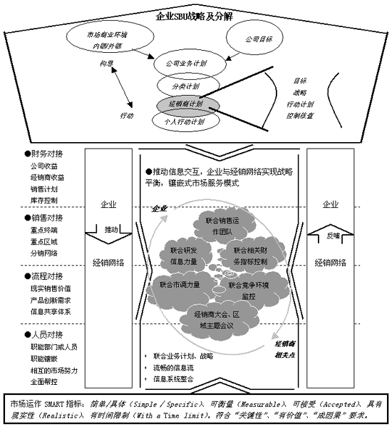 泛BSC:销售网络的平衡增强 -------------------------------------------------------------------------------- 中国营销传播网, 2004-05-24, 作者: 黄国良, 访问人数: 606 对于规模性企业而言,其销售网络的管理重点不在于发展经销商的数量,因为其核心经销网络已经基本构建完成;也不在于应对渠道大鳄挟市场以令厂家的尴尬,因为其市场规模相当程度遏止了渠道大鳄的发言权和生存权;其重点在于整个销售网络综合品质的提升,即销售网络的平衡增强,整合“BSC基本理念和镶嵌式大客户管理理念”阐述为:将客户的满意过程整合到厂家的业务中来,变统治为战略性支持,变销售驱动为关系驱动,实现多层次沟通,促进经销网络更长期、宽泛的目标和责任,可称之为“泛BSC销售网络平衡增强”。 由于企业创业成长过程的必由之路,其经销网络往往是企业来推动其成长,一般的企业平衡也是由企业内部的平衡来推动外部的销售平衡。而进入规模发展期后,关注经销网络的平衡增强,可得以实现经销网络反哺企业成长,由经销网络的外部平衡来拉动催化企业的内部平衡,达到企业和经销网络互动,从而真正实现企业和经销商的战略合作伙伴价值,使经销商真正成为企业的服务覆盖商和物流覆盖商,这也是深度分销工作的真正战略意义。由于营销的本质是对需求的管理,而在整个供应链中,经销网络与市场需求最近,所以由这一点倒推,改善销售、市场、客户服务、财务、生产、采购、新产品研发等各供应环节和部门的运作是最具针对性和实战意义的。 渠道的平衡增强带来的显性结果是管理成本的降低和销售的稳步增长。它的基础是信息基础设施和信息管理和共享(企业内部职能部门之间的横向和职能部门本身的纵向实现交互、企业和销售网络的信息实现交互)体系的建设。它的实现基本方法是分解战略目标,并围绕各个目标寻求关键绩效指标,并将之体系化。值得注意的是:关键绩效指标必须是“关键性”的、“有价值”的、“成因果”的。只有抓住关键性的,才能保证资源积聚,而不是资源损耗;只有有价值的,才能保证战略协同,而不是工作罗列;只有成因果的,才能保证有效驱动,而不是劳而无功。这些关键的价值驱动因素指标,需要不断的分析和测评其关联性,明确定位。 针对规模性企业的关键绩效指标体系可以从分销体、流程、人员、财务四个角度来考虑,并根据基于市场需求和企业实际情况的战略愿景,将角度、分解后的战略目标、衡量指标、行动方案结合起来。 1、分销体角度:根据经销区域确认需要参与竞争的直接终端客户、可利用的相关专业性终端客户(如护肤品可以在连锁药店卖、报刊可以在连锁便利店卖、时尚配件可以在连锁音像店卖,等等)和区域分销商以及它们的权重,并将目标转化可测度的指标,如:重点终端获得率、重点竞品拦截率、市场份额占有率、终端客户满意率、分销商区域渗透率、分销商获利水平、分销商满意率等。 2、流程角度:锁定对财务贡献和竞争力提升贡献价值最大的操作内容分解过程,并建立可测度的指标,如进销存系统流程优化(包括库存报表、终端销售可实时查询率、销售计划达成率等)、产品创新建议流程(区域产品创新消费者会议召开量、产品创新建议贡献率、回复率、竞争品创新项目收集率等)、产品配送流程力度(反应时间、处理时间、覆盖距离等)、促销管理流程(效果达成率、费用控制率等)、售后服务流程优化(反应时间、处理时间、结果达成率、一次成功率、费用控制率、网点开发率、配件销售额等),订单产品业务流程(订单业务量)等等。 3、人员角度:侧重于专业能力、稳定程度和服务覆盖能力,这些最终都会转化为销售业绩的达成,如:核心员工保持率、员工培训次数、终端导购派驻率、员工知识水平、专业人才引进量、员工激励指标、终端满意率、与企业的协作程度等。 4、财务角度:如:存货周转率、销量达成率、特殊市场销售增长率、应收帐款周转率、新品占销售额百分比、核心产品占销售额百分比、销售利润率、营业净利额,等等,这些都会对最终营销成果的达成、分销网络的深化、补贴政策的导向、经销商经营的稳定发生影响。 销售网络的平衡增强必须在企业完成相当的规模积累、经销商队伍相对稳定、与企业有战略合作伙伴意义之后进行。虽然都是规模性企业,但是基于不同企业不同阶段对销售网络的发展要求的不同,只要满足平衡增强的目的,指标角度可以是不固定的,可以减少,比如仅侧重于分销体角度、流程角度,也可以增多,比如增加适应于未来战略业务单元经销的角度。每个角度的指标也是动态的,根据实际情况和需要进行调整。 销售网络在不断平衡中增强,主要体现在三个方面:一是行业竞争和销售能力的平衡,其中行业竞争强调通路的拦截能力及财务能力,而销售能力强调快速反应能力及成长能力;二是结果面和未来面的平衡,结果面是指现实销售指标的完成情况,未来面侧重于适应公司未来相关战略业务单元(SBU)的发展需要;三是主观情况和客观情况的平衡,主观情况主要是公司业务单元发展愿景、期望指标,客观情况主要是经销商本身特点和当地市场操作特点。该三方面的不断平衡和强化,即构成经销网络综合品质的“平衡增强”。 如同企业内部强化平衡管理需要指标落实到人,与员工收益挂钩,加强