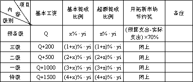 业务员是企业中一支特殊而重要的员工队伍,他们对企业开拓市场、制订正确的营销战略和发展战略具有举足轻重的作用。如何对他们实施有效的管理,尤其是有效的分配管理,是企业营销管理工作成败、乃至整个企业生存和发展的一个关键环节。 10.关于第9项的说明: (1)由于各业务员所销售产品品种的差异,因此在计算销售数量业绩时,应先确定一种产品作为标准品,然后按“约当法”折算成标准数量; (2)回款率为从发货之日起W天以内货款的实际到帐率,W天以后的回款不计人回款率。回款标志一般以财务入帐收据为准。汇票可以以开出时间为准。由于业务员每批货的金额和发货时间均不一样,所以总的年度回款率是各批次货款回款率的加权平均数; (3)年呆帐率是指每个计划年度结束时每个业务员应收款与总贷款金额的比率。 (4)业务员综合评价指数是企业对业务员进行年终综合考评指标,它由企业“业务员评等定级组织”评判。 (5)业务员正式签定合同即自动转为预备级业务员,晋级须工作一年以后。新业务员两年内不能达到预备级业务员标准的,企业将予以解聘。 11.业务员分配系统表:(表七) 说明: (1)Q由企业视具体情况确定; (2)“基本提成比例”是企业确定的每个业务员必须完成的基本任务的提成比例,x量由企业确定; (3)“超额提成比例”则是业务员超过基本任务以外的部分的提成比例,Z也由企业确定; (4)yI表示某业务员所负责地区市场的难度系数,基准数为1。各地区市场的难度系数由“业务员评等定级组织”评判,所考虑的主要因素: a.市场与企业生产基地的距离 b.市场竞争的激烈程度 C.市场运输的方便程度 d.市场的集中程度 e.市场容量大小与发育程度 f.企业产品及企业在某市场的知名度 g. 企业在某市场销售网络的建立状况等 (5)“开拓新市场节约奖”是为了鼓励业务员用最少的费用开拓新市场、提高企业产品市场占有率而设立的。其中“预算支出”由企业根据具体情况确定。 (6)业务提成中包括业务员的差旅费、交际费、促销宣传费、运费、奖励等。 |