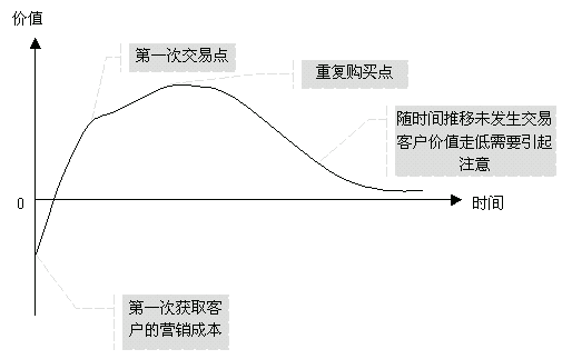 上图可以看出刚刚获取客户时其价值是负数,发生购买后价值迅速提升,企业需要作的就是使之价值维系在最高点,减缓走低的时间,或通过系列活动设法使之提升价值。 作者: 安福民 |