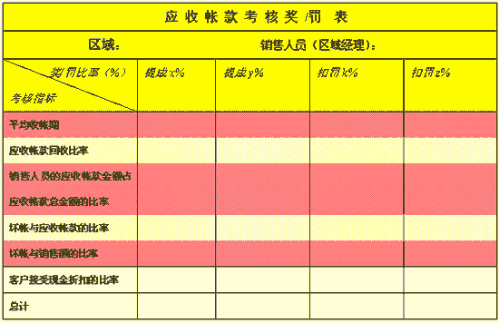 据调查,“信用”这个词是2002年最时髦的关键词之一。从今年3-15的主题为“诚信”便可窥一斑。之所以称其为时髦,是因为无论是经济学家大谈“信用”,还是寻常百姓嘴里也时不时冒将出“信用”一词。一方面,说明人们对信用日益关注;另一方面,也说明信用危机就象妖魔般蛰伏在每个人的周边。 从上表可以发现,企业在30天信用期获取的利润比现款销售要多14200元,60天信用期比现款销售多出利润34000元,60天信用期又比30天信用期多出利润19800元。 由于延长信用期而使企业资金被占用,现在我们来看看不同信用期资金占用情况。 30天信用期应收账款资金占用率=应收帐款平均资金占用率*销售成本率=日销售额*信用期限*销售成本率=140000/360*30*(80000+3000)/140000=6916元 同理可计算出60天信用期应收帐款资金占用率=200000/360*60*110000+6000)/200000=19333元 由于企业资金被占用,可能造成机会成本的损失。现在分别计算30天和60天信用期资金占用率的机会成本。 30天信用期机会成本=6916*20%=1383.2元 60天信用期机会成本=19333*20%=3866.6元 现在,我们来看一下,扣除机会成本和坏帐损失,企业在信用期实际可得的利润. 30天信用期实际增加利润=14200-1383.2=12816.8元 60天信用期实际增加利润=34000-3866.6=30133.4元 从以上计算可看出,信用期的长短与销售量有较大关联度,虽然信用期使企业的资金被占用,损失了一些机会成本,但扣除机成本和坏帐损失,企业仍有利可图。而且是信用期长的比短的获利更大。当然信用期的长短是要根据客户的资信等级而定的,只有对客户进行准确严格的审核评估而给予的信用期,才能保证企业在限定的信用期内获得利润,否则可能会因客户帐款的大量拖欠,超过企业计提的坏帐准备,而导致企业现金流的大量损耗,使企业的正常运营受阻。 三、应收帐款考核制度 ·对销售人员或区域经理的应收帐款考核指标如下: 1、平均收帐期(应收帐款/总赊销售额*360) 2、应收帐款回收比率=实际回收款额/本月合同金额*100% 3、每位销售人员的应收帐款金额占应收帐款总金额的比率 4、坏帐与应收帐款的比率 5、坏帐与销售额的比率 6、客户接受现金折扣的比率 注:以上计算均按月计。 ·对销售人员或区域经理应收帐款考核办法: 1、财务部门依据以上七项考核指标,订立每项指标的公司基准数,市场部再依据公司基准数,确定不同比率对应的奖罚比率,该比率应根据市场变化做相应的调整。奖/罚比率是指从应收帐款中提成或扣罚的比率。 奖/罚的额度=应收帐款金额*奖/罚比率总额 举例说明: 假设第一项提成比率为1%,第二项提成比率为0.5%,第三项扣罚比率为2%,第四项扣罚比率为4%。某销售人员应收帐款回收比率很高,获得提成1%,销售人员的应收帐款金额占应收帐款总金额的比率,坏帐与应收帐款的比率,坏帐与销售额的比率都较低,分别获得0.5%的提成,平均收帐期时间很长(由财务部设定一个上限,超过此上限,则扣罚4%),客户接受现金折扣比率为0(此项指标较特殊,故客户接受现金折扣比率为0时,则不扣罚;当客户接受现金折扣时,不同的折扣率给予不同的提成)。则可得出:第一项提成总得分为1%;第二项提成总得分为1.5%;第三项扣罚总得分为0;第四项扣罚总得分为4%。 假设应收帐款金额为10000元 则该销售人员应收帐款奖/罚额度=10000*(1%+1.5%-4%)=-150元(扣罚数额) 2、每月,财务部汇总、编制《应收帐款明细总表》,计算出销售人员(区域经理)七项考核指标的比率,再将每人的考核指标比率参照所对应的奖罚比率,填写<应收帐款考核奖/罚表>。最后,即可计算出每位销售人员(区域经理)的奖/罚额度。 3、应收帐款考核制度可以说是在销售人员奖励分配制度以外,又一种销售激励政策,既可与销售部门评估考核体系结合在一起(综合考核是考虑到了方方面面的因素,比如,外部市场规模.市场稳定和增长性.竞争强度.销售人员个人能力以及公司销售政策等方面),也可单独一项进行(单独考核是体现了应收帐款的重要性和特殊性)。 四、应收帐款收帐程序 1、销售人员或区域销售经理在管区内的代理商(经销商)有应收帐款发生时,应及时填报《客户应收帐款申请表》,财务部汇同市场部,根据应收帐款债务单位的信用等级,决定是否给予批复。对于批复的款项,财务部要确定应收帐款的金额和帐期,销售人员同时填写《应收帐款明细表》,以此备案。 2、当发生应收帐款后,销售人员应对应收帐款的债务单位,及时宣讲公司的现金折扣制度(即1/10、N/30),争取债务单位早日付款。 3、销售人员应随时核查应收帐款到期日,当某笔应收帐款到期的前一周,销售人员应致电或E-MAIL代理商(经销商),提醒其付款日及付款金额。 4、应收帐款到期日,销售人员应主动与财务部门联系,核查债务单位应收帐款到帐情况(包括到帐款项、到帐金额)。 5、如发现逾期款未到帐(最多宽限一日),销售人员应主动上门索款(针对本地区客户),如属外省市客户,则需立即发出《催款通知单》,并查明拖欠款项的原因。 6、当债务单位的应收帐款超过一周时,销售人员或区域经理应以公司的名义,再次向债务单位发出《催款通知单》。 7、对于无确凿理由拖欠应收帐款到期后十五天以上仍未支付的款项,将转由公司直接管理,并向债务人发出正式的《客户欠款警告书》,并停止向该债务人继续供货,同时将其信用等级自动调低。 8、债务单位的应