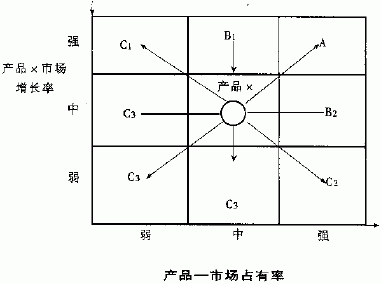 产品x的B种战略选择(有选择的增长战略)。此战略的目标是: --或是将产品x投向可能更有利的市场新领域(B1); --或是改善产品x在目前市场领域中的市场占有率(B2)。
