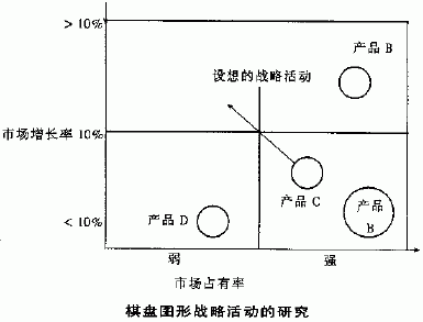 如若将"奶牛"区域活动产生的多余资金用来在"风险"区域创造新的产品,这样,企业整体活动的重心便沿着棋盘图形的对角线运动。这是一种产品--市场战略。 2.ABC法。此法是根据某一种产品在成绩矩阵中目前所处的位置,确定其三种基本战略的选择A、B、C。