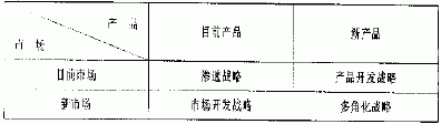 目的是使战略活动的行业处境得到改善,使之从矩阵中的目前位置转移到另一个被认为有利的位置上,或是改变行业,使之占据尚未开发的领域。 1. 产品---市场战略。企业全部产品和市场及其可能实施的战略图例。