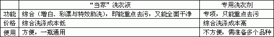 “当家”浓缩洗衣液与专用洗衣剂的比较
