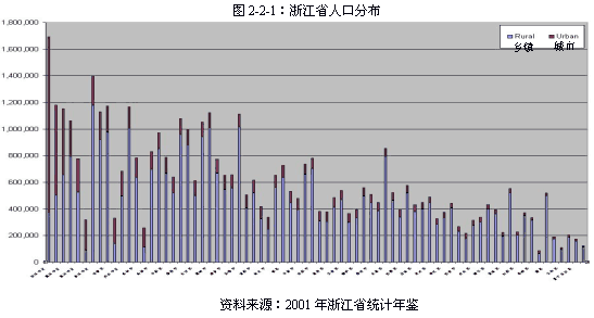 首先,由于中国市场是一个只具有二十多年历史的年轻市场,区域经济发展不平衡,市场规则和标准不健全,因此,中国市场的总体水平不高。这具体体现在以下两个方面:一是市场运营及管理的水平不成熟、不健全;二是市场自身发展的状况不平衡、不健康。 其次,中国目前仍然是一个发展中国家,国民收入的总体水平不高,人均可支配收入较低,因此,日用消费品市场的人均消费能力还很不足,单位消费者的平均服务成本较高。 最后,中国的城市化水平虽然在不断提高,但乡镇总人口仍然占绝对多数,广大乡镇市场依然是日用消费品不可忽略的主要市场。以经济较为发达的浙江市场为例,在所有74个行政区域中,80%的人口仍然集中在乡镇市场(见图2-2-1)。