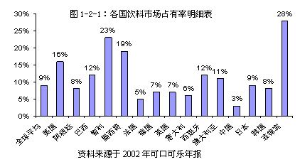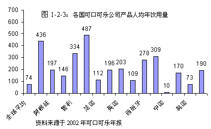 ![]() 2002年全球可口可乐公司产品人均年饮用量已经达到74杯(见图1-2-3)。