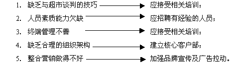 上述的循环发生在无数企业中,而且每天都在发生,从图上看,我们可以找出中小企业超市问题的深层原因: 1.经营者的思想模式问题1----快速发展 大多数中小企业家或管理者是从游击战式的营销中成长起来的,抓住机会,一夜发家的思想已经形成习惯,有点像《英雄》中的刺客。公司发展了,思想习惯却未能改变。而现代大规模销售模式,有如正规军交手,系统和科学的模式才是真正有效的。正规的营销,成长是需要时间的,这是一个成长的过程,是不能跳过的。时间长,就要求资源的合理和高效率使用。这需要周密的计算及系统的计划。 2.经营者思想模式问题2----广种薄收,因陋就简 这是第二个常见的思想误区,因为公司小,事情多,费用紧,所以,一不做品牌,二不培训人员,三不做营销计划。只做销售,而且实行包干,不管怎么干,拿回货款就是英雄。 超市营销是典型的现代整合营销模式,只靠一个销售技巧就算运气再好,最终也是失败者。 3.超市本来就是大企业清除小企业的手段 超市的管理是以市场为导向的,其所有的苛刻条件对销量大的企业不值一提,对销量小的企业就是逐客令。几乎所有的外资/合资企业都策划着未来十年内,伴随超市发展将国内中小企业清除出局。因为这就是发达国家发展的历史。也是垄断形成的过程。 以上的三个深层原因,两内一外。外部环境不可改变,而且会日益恶化,内部环境或可改变,完全取决于经营者思想的转变。 为了解决以上的问题,夸克顾问专家认为,可采用以下几种方法: 1.制定全面营销计划 a. 正确科学的预测发展目标与速度; b. 合理安排资源的分配; c. 合理安排事物的先后顺序。 2.系统培训,提高全员素质 a. 建立系统,连续的培训机制,先从工作习惯及基本工作技巧入手,逐步提高; b. 建立企业大学,使学习成为一种文化。 3.控制发展规模,不求广,只求精 集中资源于重点区域,市场与销售加管理,共同成长,建立整合营销体系。 4.提高质量与服务水平,设计特色包装 这是唯一的一个快速发展手段,也是适应超市渠道营销的方法。新奇的包装是吸引消费者尝试的最低成本促销,优秀的产品质量及服务是尝试后形成忠诚度的最佳手段。 5.降低销售重心,减少中间环节 这是一个销售组织结构的建议,不论您以前采取何种分销模式,超市需要厂家直销模式。不做直供,无论从价格、销量、利润那个角度讲,您的产品是无法站稳脚跟的。直销模式要求销售组织扁平化,取消中间环节,工作要求---即细致又耐心。 对于中小企业,超市问题近看是销售问题,远看是生死存亡。采用头痛医头,脚痛医脚的模式,只能是扬汤止沸。虽然现在的中国存在着各种各样的顾问和许多巧妙的营销方法,但您的企业要想成功突破超市禁区,本质上是决定于您作为经营者,是否能克服自己的人性弱点。 作者: 王磊 |