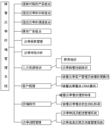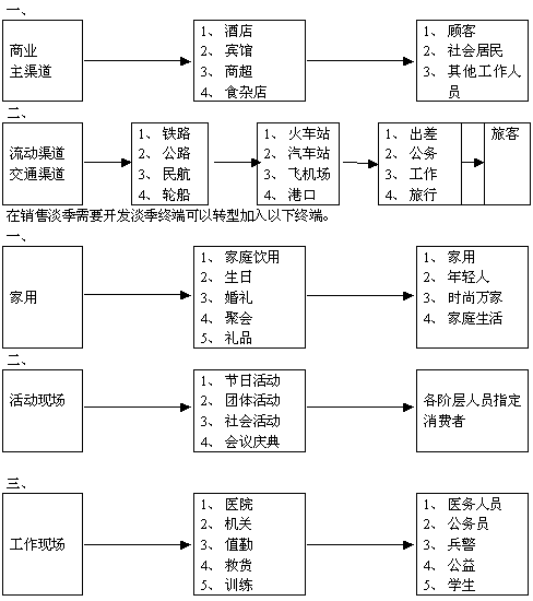 许多快速消费品都有鲜明的销售旺季和销售淡季之分。我所服务的行业是啤酒行业。作为一种快速消费的饮品,它也有明显的淡、旺季之分。每年的10月末到次年的3月初,各啤酒市场进入了消费淡季,产品销售不畅,资金周转困难,现金流量骤减。于是,许多厂商压缩各项开支,停止了促销,撤下了广告,一派刀枪入库,马放南山,偃旗息鼓的态势,有的企业干脆停产放假。 转型后淡季助销结构 (编者注:许多作者在画分销流程的图表时,总是用→将制造商和消费者一串到底(菲利普.科特勒的《营销管理》一书中也是如此),实际上这里面存在一个小问题,即到了零售商和消费者之间,用→还合适吗?我看用←更贴切一些(见上图),毕竟产品到了终端零售这一环节,是需要消费去到卖场选购产品的,这就牵涉到一个卖场怎么吸引消费者到你这里来的问题,虽然这是一个小问题,但其中包含的东西是值得我们深思的) (二)完成由批发商向物流配送商的转型 完成由批发商向物流配送商的转型。在销售淡季可以尝试把一部批发商改造为物流配送商,厂方并予与强大的前期支持力度,在快速消费品行业如啤酒、饮料行业完全可以在销售淡季将一部分批发商完成向物流配送商的转型。 传统商品流通结构: 转型后的淡季配送结构 综上所述抓淡季搞渠道建设,做营销流程的改造要注意以下几个问题: 1、淡季的销售与原有渠道成本、控制、效率和效益之间关系,与营销流程改造成本、控制、效率、和效益之间关系。 2、在销售淡季做营销流程的改造,须满足以下几个取问 2.1渠道营销流程扁平化。 2.2渠道营销流程向终端个性化发展,如利基店、量身订做。 2.3渠道营销流程要注意与原有业务流程之间的关系。 3、淡季营销流程的启动,可能与原有流程发生一定的冲突磨擦,为了避免发生冲突我们 可以对实施淡季流程作业做出明确的定位要求。 如: 3.1选择非主流渠道,让开大道走两厢; 3.2提供个性化的服务渠道 3.3更便于厂方与消费者交流的渠道; 3.4避免与原有渠道流程发生冲突的渠道 3.5利用新技术,如电子商务等 (三)建立健全销售淡季助销管理系统 利用销售淡季,建立健全终端管理系统,这是一个非常需要完善和由点到面的过程。比如啤酒饮料主要消费场所是餐饮业,消费水平高、销量大、引导性强,成为中高档啤酒饮料的消费场所。而社区零售店由于规模小、销量少,一般消费品企业也无力顾及,但这儿的优点是消费群相对稳定,现款现货,现金流比较好。我们在销售淡季时正好有比较充足的时间来开发这块在销售旺季无暇顾忌的市场。 销售淡季助销管理系统 1、信息管理 ①强化淡季市场分析 ②报表管理 开发淡季网络需要注意的几个问题: (一)拟开发淡季网络的选择标准 1.1人口密集区、消费水平高的社区 2.繁华地带、娱乐场所附近地区 3.选择位置突出、形象好的社区店 (二)合作协议以 1、书面形式,企业与淡季终端达成合作 2、划分区域,制作资料卡,按线路配货 3、淡季销售政策 (三)淡季产品组合 1、一般选择小包装 2、盒礼品装 3、优惠包装 (四)淡季产品的价格组合 1、批量折扣价格组合 2、阶段性的优惠促销价格组合 3、搭赠同类产品变向降价组合 4、搭赠异类产品变向降价组合 五、淡季需要加大促销力度 (一)在销售淡季应出台一定的比旺季优惠许多的淡季销售政策,以调动经销商的积极性 如家电的空调行业在冬季为销售淡季,许多空调商就是在淡季出台一些淡季政策,这时一些家电连锁销售商纷纷打出几千万的进货款,然后陆续在销售旺季将货物销售掉。对于一些核心大户,在淡季加大返利比例、出台奖励政策。 (二)开展厂商联谊活动 快速消费品的销售要依靠经销环节,从某种意义上来说,经销商是企业产品的第一消费者,他们对企业的忠诚度、满意度是维持产品营销通路流畅的关键,而维持厂商的关系,除了利益上的分配,还要注重感情上的培养。在销售淡季,请经销商座谈、考察,经销商开展工业旅游,增进厂商之间的相互了解,这样就稳固了厂商之间的伙伴关系,又交了朋友。 六、开发销售淡季终端 举例说明:比如我们销售可乐、饮料、纯净水等,快速消费品,我们通常会选择如下终端。 综上所述,要较好地完成淡季营销。在营销淡季有所突破,应该注意以下几点: 淡季市场的开发与转型,必须要有各种营销手段的整体支持。并形成淡季销售相适应的组织结构,管理制度和业务流程。然后选择目标样本示范市场,由淡季组织进行统一策划,统一指挥,重点突破。 淡季市场的开发与管理人员要有明确的目标-责任-权利,激励与考核并重,尤其在销售淡季对客户的拜访,市场调研、物流管理、信息反馈等等都应提供比旺季更为科学、合理的服务标准。 在对待销售目标、绩效考核等方面都要完成由旺季的销售量向淡季的销售质的转型。 一、选择与淡季销售相适应的渠道。 二、与淡季渠道(原有渠道+淡季分销能力的渠道)一同建立销售价值链,如共同做混合直销等。 三、在淡季更要加强对物流、资金流、信息流的管理,通过服务与有效的管理,提高客户的忠诚度,巩固销售市场,进而扩大淡季销售。 四、集中可利用资源,进行局部市场上的突破。 五、淡季销售攻势要循序渐进,要结合自身的特点和具体市场,因地制宜做出自己的模式,不要因此而影响了旺季的营销,要统一规划,平衡实施。 