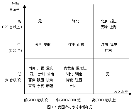 市场表现为消费需求的总和,它包含着不同的千差万别的需求形态,任何一个企业,无论其规模如何,都只能占有市场总和中的有限部分。特别是我国经济经过了20余年的高速发展,商品市场供求格局已发生了根本性变化,由过去的供不应求转变为相对过剩,出现了买方市场,这虽然给消费者带来了实惠,但却给许多工商企业带来了极大的压力,面对买方市场,不少企业深感迷茫,不知如何应对,在这种情况下,研究并制定有效的开拓农村市场的营销策略,对扩大内需,摆脱工商企业困境,推动国民经济持续、快速、健康发展显得尤为重要。但我们更应该意识到,农村市场是与城市市场截然不同的市场,尤其冰箱市场更是不同。为此,厂商必须采取与城市市场不同的营销策略,在充分研究农村冰箱市场的基础上,针对不同的细分市场,开发出不同的适合农村消费的新产品,制定合理的价格策略,选择合适的销售渠道,采取农民易于接受的促销方式,形成农村市场特殊的营销组合。但这些营销组合及策略的制定,前提条件就要求对农村冰箱市场进行合理细分,如何细分这一市场,本文提出了一种方法,希望能对冰箱企业或类似企业有参考、借鉴意义。 ④将所有地区的相关数据(见表1.1)按各自的平面坐标标明在“收入-普及率”平面坐标图上(如图1.2所示)。该图十分直观地反映了全国农村冰箱市场的分布情况,从中也可以清晰地看出每一地区所处的市场位置。该图将全国农村冰箱市场划分了9个细分市场,从企业选择目标市场和制定影响策略的角度出发,可以将这9类市场进一步归并成3类市场,即成熟市场、需培育市场和潜在市场,如图1.2所示。 1.3 市场细分结构分析 市场细分的目的是为了帮助企业选择合适的目标市场,并制定相应的营销组合策略。 ①成熟市场:即高普及率的市场。这类市场已基本进入成长期后期并向成熟期过渡,产品销售量大,并有丰厚的销售利润,是企业应重点开拓和抓住的市场。这类市场有河北、北京、浙江、天津、上海等。 ②需培育市场:即普及率低于收入水平的市场。这类市场有较高的购买力,但却因某些原因使农民的冰箱消费需求未能得到满足。对这类市场企业应做细致的调研分析,并采取相应的营销组合策略培育开发市场,以促进其向成熟市场转移,扩大本企业的市场占有率。如广东、福建、江苏这三个市场人均收入较高,而普及率却较低;同样,对于内蒙古、黑龙江、湖北、湖南、海南、江西、吉林这样的收入中等,普及率却很低的市场均应做好细致的调研分析,找出制约农民冰箱消费的原因,从而选取适合本地区的营销策略。 ③潜在市场:即收入水平和普及率基本相同、且普及率较低的市场。企业应密切关注这类市场的发展态势,因为随着影响因素的改变,其很可能会转变成第一类(成熟)市场或第二类(需培育)市场。考虑到我国冰箱市场主要集中在中、低收入地区,且属于这类市场的省、市较多,冰箱企业就应重点、开发功能简单质量稳定、价格低廉的产品。注意到我国农村居民用品的平均消费水平在千元左右,因此,冰箱价位在1300-2000元之间比较适宜。 作者: 李宏 |