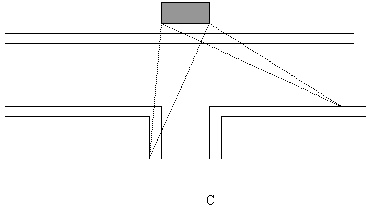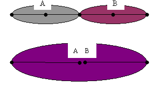 真正的商圈不是绝对的同心圆模式,其规模和形状是由各种各样的因素决定的。包括经营业态、商店规模、竞争者的位置、交通条件等许多因素。在商圈概念上有一个著名的海滩原理:即在一条海滩上做冷饮生意的两家商贩,一开始其各自的商圈范围是均衡的,由于竞争因素导致他们集中在一起,共同吸引顾客。如图: