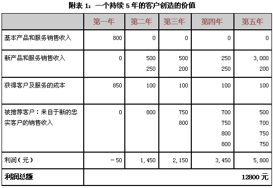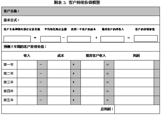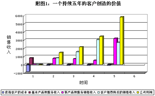 客户关系到底有多重要?客户持续保有创造的价值到底有多少?恐怕许多公司对此仅是一些模糊的概念,未加过多关注和分析。最近笔者在与一家咨询公司的合作中,深切体会到他们对客户价值认识上的肤浅和短视。这家咨询公司接手了一个大客户的企业内部培训项目,该客户全公司上下对此培训极为重视,希望提前看到课程时间表、学员手册,以及教材。应该说客户的要求是极其合理的,但距开课仅有四天时间了,客户仍未拿到所需的东西。这家咨询公司却为此而争辩,认为客户才付了那点钱,就想要这要那,是不合理的。笔者实在为客户抱不平,斗胆给这家公司的总经理和员工上了一课,让他们认识到:如果能持续维系客户关系,在这一个客户身上能获取多少利润,从这一个培训项目中又能衍生出多少服务项目,从这一个客户身上能赢得多少客户持续价值。 从附图1可以更直观地看出,随着A客户与H公司客户关系保持时间的延长,A客户为H公司创造的利润就越多。由最初第一年800元平面软件的第一笔销售额导致了第二年至第五年各种软件销售12800元的增加额,其中A客户不断进行向上购买和交叉购买,为H公司直接创造了5150元的销售额;另外,A客户直接和间接推荐购买又创造了8100元的销售额,两项相加销售额共计13200元,销售曲线呈大幅上升的走势。客户平均开发成本,则由第一年的850元,下滑为第二年起的100元/年,客户开发成本曲线呈急速下降至平稳的态势(见附图2)。 一个起初令公司亏损了50元的客户,五年后竟为公司创造出了12800元的利润!这就是与客户建立持久稳固客户关系的价值所在!这就是客户价值倍增的魅力所在! 决不要短视的看待客户今天的购买行为、购买数量和支付金额,也许你今天瞧不起或怠慢的客户,明天的消费需求会爆炸式增长,但对不起,届时客户消费增加量的支出可能因你昔日无礼的待客,已然转入你的竞争对手的钱袋里了。只有用情感牢牢地拴住那些有价值的或具潜在价值的客户,提高他们对企业的满意度和忠诚度,尽可能延长客户的生命周期,才能实现客户价值的倍增。所以,如何让客户保持长期的满意度和忠诚度,如何与客户建立持久和稳固的客户关系,是每个企业应积极思考和着力关注的问题。 二、如何计算客户持续价值? 客户持续价值,不仅用于企业评估每个客户的潜在价值和盈利能力,同时还将作为评定客户价值等级的一项重要参数和指标。所以,明确每个客户的持续价值,对企业有的放矢的管理客户、服务客户,与客户建立关系,以及制定营销策略是大有裨益的。 客户持续价值 = 客户生命周期内预计交易次数*平均每次购买金额 — 获得一个客户的成本 + 推荐客户的净收入 通过客户持续价值模型,企业可以方便地计算出每个客户在其生命周期内所创造的持续价值和利润。(见附表2) 三、如何正确理解客户持续价值? 目前,仍有许多企业要么对长期保有客户的价值认识不清,要么对客户价值的理解有失偏颇或过于狭窄。正确的理解客户持续价值,不仅要从客户以发生的交易支出中去分析客户,还要以未来发展的眼光,考虑客户潜在的价值增长。比如循环消费的频度有多少,客户是每周来一次这个商场购物,还是每月、每季或一年来一次。循环消费的频度越高,客户潜在的价值增长就越大。再比如增量消费额及购买率,客户每次购买某种产品或服务的金额是多少,增量购买率有多高,这都关系着客户的潜在价值增长状况。但并不是说A客户的增量购买率高于B客户,A客户的潜在价值就高于B客户。如果B客户影响和推荐的客户所创造的价值是巨大的,那么B客户的潜在价值实际上不低于甚至还会高于A客户。曾听一家保险公司的代理人介绍说:他有十多项保险业务是由他的一位投保人转介绍的,虽然那位投保人自己只保了一个300多元的意外险,但经其介绍的保险业务的合同额都挺大,这位投保人自然成为这家保险公司倍受尊宠的高价值客户。再如交叉消费,我们不难发现周围有些朋友由于对某个家电品牌极其偏好,结果所使用的电器产品是一水儿的这个牌子,从彩电、冰箱、空调到洗衣机等等,这就形成了交叉消费,他们的“钱包份额”几乎被其偏好的品牌霸占了,这类客户的价值潜力是巨大的。厂商只要让客户保持对产品、服务及品牌的高度满意和忠诚,就能源源不断地从这类客户身上掘到金子。 理解客户持续价值,不仅要分析客户为本公司带来的实际货币收入,还要考虑客户给予公司的其它形式的回报,比如,客户向其亲朋好友主动宣传和推荐公司,提高了公司品牌的市场认知度和美誉度,并由此获得了良好口碑;由于客户的义务宣传,使公司的销售费用降低,营销效率提高;由于推荐购买率的增加,又使公司销售额和利润大幅增加。这就是“跳出利的圈子,便能获得更大利”的道理。 理解客户持续价值,不再以简单的销售收入为基础,而要以成本为基础,更加关注服务于每个客户所耗费的成本。如果从某个客户身上获得的销售收入很高,但服务于该客户的成本也很高,两项相抵,最后公司获得的利润则很小,这种客户的价值就并不高了。如今,银行鼓励客户使用ATM机取款,商场鼓励消费者使用信用卡付账,目的就是为了降低营运成本,提高单位毛利率。所以,在分析和评价长期客户价值时,成本因素应作为一项重要的评价指标予以关注。 理解客户持续价值,不仅