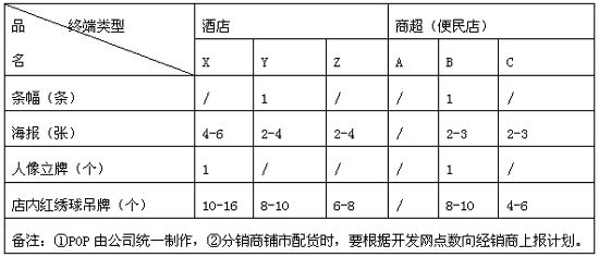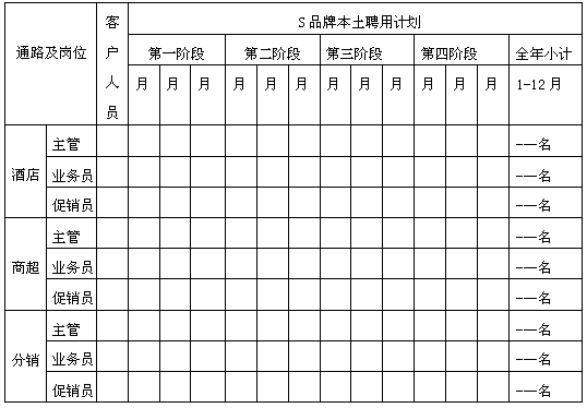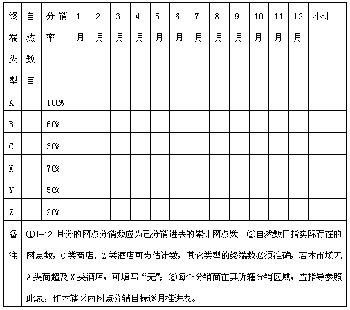 当笔者做新产品如何成功上市的课题之时,禁不住地想起了现代模糊学上一种叫做“蝴蝶效应”的理论。它形象的说法是:南半球一只蝴蝶偶尔扇动翅膀所带起来的微弱气流,几星期后竟变成了席卷美国得克萨斯州的一场龙卷风!它所表明的原理是,一件事物的初始状态常常具有决定意义,初始状态的微小差异,往往会导致发展过程和结果的极大差异。那么,对于一个企业来讲,新产品上市的初始状态又是什么呢?它的初始状态又是如何研究和论证呢? 注:上述各个通路的利润率可根据当地市场实际,上调若干个百分点;各个通路的促销费用由厂商两家共同制定。 初始状态四:组织设立 一位伟人说过:人才、干部是世界上所有的宝贵资本中最宝贵最具有决定意义的资本。应该了解,在我们目前方针策略确定下来之后,干部决定一切。 柯林斯在《从优秀到卓越》中强调:坚持先人后事的观点,坚持让合适的人上车的思想,是拥有卓越公司和美好生活的关键。 同样,新产品成功上市的“火战车”,也需要定好“1+1”(办事处+总经销商)通路框架下的组织结构。因而,推广新产品的营销人员要精干,要训练有素,具有良好的市场开拓能力和营销管理能力。同时,必须完成对营销人员的再开发和再激励。据笔者研究,如果企业在推广新产品之初,不能有效地将营销员的推广激情调动起来,不能有效地制定新产品的政策机制和薪酬考核机制,那么,营销员往往囿于传统经验,权衡利弊,顾此失彼,不能集中精力,新产品推广在老产品和畅销产品面前,也就缺乏强大的内存动力。 案例扼要:S品牌在新产品上市之初—— 1)、设立组织结构原则如下: ①、厂家设驻外办事处,其下辖办事处经理一名,通路主管若干名,以上人员原则上由厂家直接派驻,组建厂家新产品推广体系当中最基本的核心团队。 根据市场容量大小和网点开发情况,适度适宜地招聘一定数量的促销员和业务管理员。终端促销员和业务管理员实施本土化招聘。 ②、要求经销商设业务主管以及负责周边乡镇分销商的业务管理员若干名,在S品牌业代指导下,有效地开展酒店、商超、便民店和分销商的铺市工作和终端促销服务工作,并独立承担所负责辖区内货款回笼工作。 2)、组织结构完善与聘用计划表: 3)、新产品推广费用,公司将根据年度增加的销售额的全部或部分利润,作为市场推广费用支持(800万左右),有关费用和销售指标由销售公司单独统计及单独考核。 初始状态五:通路实施进程 通路实施进程,也就是新产品上市计划与步骤。下文所述即为S品牌新产品上市的通路计划介绍,谨供参考。 (一)、导入期: 第一阶段:由经销商直接掌控、直接配送终端零售商。 首先要做的是中心城区的酒店、商超、便民店终端铺货: ①时间要求:导入期的第一个月(20-30天): ②铺市网点目标:根据确定市场实际情况而定。参考网点数如下: ③铺市品种目标:根据确定市场实际情况而定。参考品种数如下: ④POP陈列及数量要求: ⑤跟进管理措施: A、注意上柜质量,产品陈列、POP陈列是否醒目、整齐、统一,是否有损坏现象; B、注意收集消费者、终端商的反馈意见,以便及时补充和改善。 C、业务代表指导培训经销商业务员。 D、固定各个片区的拜访路线,原则上要求经销商业务员每周一次拜访终端网点目标。厂家业务代表实施抽查制度。 ⑥跟进促销措施: A、X店上促销小姐,合理分配每日促销任务; B、部分Y店根据市场发育情况,有选择地上促销小姐。 C、X、Y酒店促销,要根据各个产品促销力度,实行买赠和刮卡促销形式,各个市场结合实际,进行个案申报。 D、节日期间,A、B类商超,要根据各个产品促销力度,实行买赠和刮卡促销形式,各个市场结合实际,进行个案申报。 第二阶段:由分销商配送产品。经销商指导帮助分销商开发、管理终端零售商。 ①分销时间要求:导入期的第二个月。 ②分销商目标数量:城区内定2-3家分销商,每个区镇/县镇原则上定一家,大的区镇/县镇可选择两家,根据市场实际情况,灵活机动。 具体分销商数量,要根据市场实际情况来定。 ③分销商选择原则: A、每个区镇/县镇成熟一个,发展一个。 B、分销商自有1名业务员,有一辆人力送货车。 C、有固定的网络。 D、信誉好,不倒酒。 ④分销商管理: A、每个分销商被划定一个享有独立经销权的保护区域,实行“小区域独家代理制”,划片管理,不得跨区冲货,违者重罚。 B、签好经销商、分销商双方合作协议,公司业务代表也可以出面协调两家关系。 C、经销商业务员每周一次拜访分销商,指导检查终端工作。厂家销售代表实施不定期抽查,原则上每半个月一次。 ⑤经销商人员定位及其职责: 根据区镇/县镇面积大小,经销商每个业务员要负责2-3个乡/县镇。 主要任务是指导分销商做好产品铺市、产品陈列、POP陈列及相关促销活动等终端维护工作,不断提高客情关系。 A、每家分销商首次铺市网点目标:根据当地实际情况及分销客户实力而定,分销商的下批视作终端零售商。参考网点数如下: B、每家分销商首次铺市品种目标:根据当地市场实际情况而定。参考品种数如下: C、POP陈列及数量: (二)、培育成长期 A、在培育成长期,指导经销商在稳住直控终端网络之后,要逐月督促分销商完成目标终端分销率: b、根据市场特点及淡旺季之别,不间断地、灵活地进行分通路促销、分通路管理。而且,还