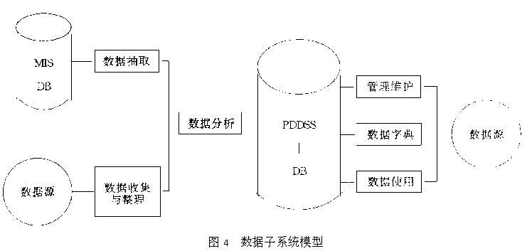 2.3 PDDSS的特点 ① 通用性和实用性相结合 如前所述,作为原型系统的PDDSS是在一般产品开发决策系统程序基础上开发的,具有开放性和扩充性,为具体应用打下良好的基础,同时这种一般性和通用性来自于我国企业实际状况,因此又有较强的实用性,特别针对我国机械企业.实际上,专用PDDSS的开发是一个一般到特殊、抽象与具体相结合的过程. ② PDDSS是人机交互系统,它支持而非代替决策者进行决策. PDDSS充分发挥计算机优势,为产品开发基本过程中每一步骤提供必要的信息,但目的是提供决策的依据而非作出决策.PDDSS设计中注重了创造决策分析的环境、激发人的思维创造力,并诱导和辅助决策者利用自己的经验、知识,积极、主动的应用各种决策分析工具和模型以作出有效的决策. ③PDDSS软件开发中采用结构化分析设计技术结合快速原型法计方法,使系统具有较强的灵活性和适应性. ④遵循“优势互补原则”,软件系统采用多种语言混合编程,主要用到BorlandC++、VisualBasic和Foxpro. ⑤PDDSS操作简单、屏幕生动、响应迅速,具有良好的用户界面,利于建立友善的人机关系. 3 数据子系统(DBS)设计 数据子系统设计的内容包括产品开发决策专用数据库的设计,对PDDSS的数据管理和维护功能的实现,数据抽取功能和与其它信息系统接口的实现以及其它的数据共享问题.因此,数据子系统是一个名副其实的数据库应用系统(DBAS),它基于Foxpro2.5forWindows实现,其模型见图4.