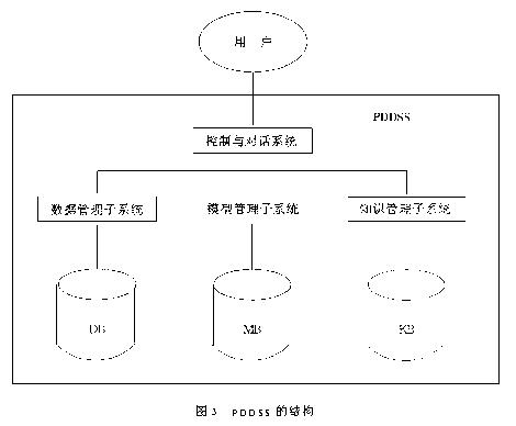 作为软件系统的PDDSS由4部分组成.控制与对话系统实现人机交流、对话管理以及整个系统的运行控制;知识系统(KBS)提供必要的推理知识、咨询、解释和帮助其它文本资料;模型子系统(MBS)和数据子系统(DBS)在后面两节中描述.PDDSS的体系结构见图3.