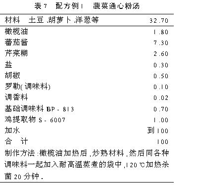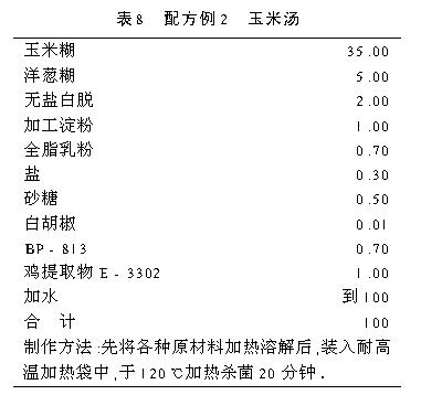 利用此调味品加工高温加热制品的配方及制作方法见表7、表8。