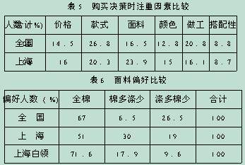 文章首先对整个国内衬衫市场行情作了分析,然后从营销组合策略中的四个策略中分别作出分析,提出了相应的营销战略。 综上,消费者对衬衫的核心需求是一个挺拔、清洁的形象,满足这一核心需求的产品要素可以总结为:挺括不变形的衣领,不易起皱的衣身,经典又蕴涵时尚的款型,质地精良的面料和快捷便利的洗涤处理。由此而引申出对于衬衫的附加需求:舒适的穿着感和良好的品牌形象。这些因素综合起来,可以构筑一个满足消费者口味的产品组合。 2、价格策略。 价格是直接影响消费者购买决策的因素,制定适合的价格策略是至关重要的。所谓合适的价格是确定一个消费者和厂商都能感到满意的价格。就全国市场而言,36.8%的消费者能够接受100-150元这个档次,其次是50-100元。而上海的消费者接受的价格档次略高,37%的消费者接受150-200元,33.7%的人接受100-150元。这表明从100-150元这个价格范围内的衬衫是比较具有竞争力的,这部分大众化市场是典型的同质偏好市场,可以赢得最多购买者。同时在这里也有最多的竞争品牌,而且产品特性和品牌特性趋于雷同,就上海市场而言,开开,雅戈尔,名勋等品牌的这部分产品线都比较丰富,所以进入这个大众化市场在品牌操作,宣传推广等方面要加强力度,显示出与众不同的特色来。另外,收入水平较高的白领男性消费群体对价格的承受能力更高些。而且相关性分析表明,价格档次选择与收入水平存在显著的正相关性(P=0.006,相关系数为0.2796),收入水平越高,购买衬衫的价格档次也越高。应该说白领虽然人数不多,但他们的购买力强,对衬衫的需求量大,针对他们所设计的中高档衬衫也是一个十分具有潜力的市场。但他们对产品本身和品牌形象的要求比较高,目前市场上主要有国内知名品牌和金利来等相当一部分境外品牌,境外品牌在产品设计的时尚性和品牌形象的塑造和宣传方面都有所见长,国内品牌要想在中高档市场中立足脚跟,与境外品牌一争高下就必须在这些方面有所改进。可见消费者主要追求的是物有所值,大众化市场和中高档市场都有发展的空间。每个企业应根据自身的产品特点和实力来确定发展方向,但作为一个品牌,产品 线要丰富,价格定位却不能过宽,否则会引起目标市场定位的混乱,所以一个企业想进入两个不同的市场,从长远考虑,应采用多种品牌策略。 3、销售渠道策略。 对于大众型的消费者来说,国有百货商店仍然是购物的首选,由于其商品种类齐全,品牌众多,价格实惠而且质量有保证,所以有66.4%的样本选择到国有百货店购物。合资百货以其宽松的购物环境,良好又富有创意的店堂布置以及众多优秀的品牌,吸引了一大批较有购买力的消费者,尤其是年轻人。在对白领男性的调查中有77.9%的样本把合资百货作为理想的购物场所,远远高于去国有百货的比例(见表7) 目前国内品牌都以国有大百货衬衫专柜为主要的销售渠道,这与大众化市场基本没有矛盾,但若开发以白领为目标市场的中高档品牌,就应该对合资百货这一销售渠道加强开拓力度,以品牌形象厅或柜的形式出现,增加其铺货、出样面、店堂布置及宣传上的投入。 好的推广策略不仅要让消费者了解产品和品牌,更要帮助他们做出购买的决策,有69.4%的消费者认为在购买服装时影响购买行为最主要的因素是周围人的意见(见表8),可见产品的口碑对于理性消费者购买决策是十分重要的。衬衫品牌在进行宣传推广活动时,可以采用软新闻的形式来提高自身的产品质量和形象的口碑。此外,消费者的服装购买行为受广告宣传的影响也较大,占样本总数的30%以上。在众多的媒体中,有74%的消费者认为电视广告的影响力是最大的(见表9)。电视通过对服装的直观展示构成强烈的视觉冲击,而且传播层面广,便于快速提高知晓度,所以金利来,杉杉等品牌在推出期都充分利用了这个媒体并获得成功,当然电视广告的投入是比较大的,相对来说售点展示和服饰杂志的投入就小得多了,尤其在商店橱窗上,投入少但效果直接,有47%以上的消费者认为好的橱窗不仅吸引力强,刺激购买欲,而且对品牌的影响深刻。在这里要说明的是,售点展示还应该包括店堂布置,灯光音响,服装出样等因素,他们的整体组合就是强而有力的传播媒体。服饰杂志是近年快速发展起来的一种媒体,以其精美的设计印刷,时尚流行的信息,特定的消费群体吸引着众多中高档服装品牌,其中也不乏世界顶级品牌,由于其价格不菲,所以国内衬衫品牌几乎没有利用过杂志广告。但调查显示,有51.6%的白领主要从服饰杂志上了解品牌,获得服装信息,并以此作为自己穿着的参考和指导, 比例远高于普通消费者,而且人数在不断增加。因此,针对这部分市场的品牌,服饰杂志是不应放弃的宣传途径。 三、总结 就目前国内衬衫发展来看,出现顶级品牌的可能性不大,主要是大众化和中高档两类市场。而这两类市场的目标消费群的需求和消费习惯有很大差异。大众化市场主要针对普通购买力的消费者,这个群体人数众多,消费讲求实惠,对价格比较敏感,对产品和形象没有太高的要求。 目前市场以国内品牌为主,大家在产品特征和品牌特征上都趋于雷同。所以进入这个市场的品牌应着眼于降低成本和在面料款式上做出产品特色,定价在100-150元之间为佳,销售仍以传统的大百货专柜形式,在促销上选择一些投入少,而影响面广