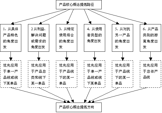 我们所面临的是一个迅猛发展的时代,这种增长正在以几何级数的速率裂变,全面建设小康社会和一系列前所未有的庞大机遇产生的发展性和享受性消费无疑将使这一速率更加震撼,双向的互动传播保证有效的信息交换,不仅成为企业发展的前提,更是决定企业能否生存的基础。这种信息交换中,“产品核心概念的提炼”,由于信息必须整合落点在其上,这一课题无疑是重中之重。但是遗憾的是,关于这一课题,我们更多的看到的是繁杂的案例褒贬和“必须怎么样”、“适宜怎么样”或“确切怎么样”的要求,而鲜见明确的方式方法的论述。笔者从业务员到营销副总,同时曾客座担任多个有份量的项目的总策划,将自身定位于完整行销领域永无止境的学习者和探索者,对此问题做了一些思考,在此,将之整理奉献给需求者参考,优则用之,劣则汰之,希望于需求者有所助益。 图1. 产品核心概念提炼的路径 六、产品核心概念提炼的7大步骤 光知道产品核心概念导出的路径是远远不够的,就如同光知道一个销量,并不能说明销售工作的综合质量一样。有效的产品核心概念,往往来自于其严谨的推导过程,可以依次为7大步骤。如图2所示,产品核心概念的提炼过程就如同一只漏斗,下端是许多层滤网,从漏斗的上端装入原始产品资料,然后顺次漏下、滤出,直到取得核心概念。为此,要不断地识别、鉴定、证实、分离、评估那些影响核心概念目标的因素,不要怕烦,除非你不怕死。 图2. 产品核心概念提炼的一般漏斗过程 七、产品核心概念提炼的漏斗技巧 图2表述的产品核心概念提炼的七大步骤形成了一个相对严谨的产品核心概念提炼漏斗,但这个漏斗漏出的未必就是黄金,因为它毕竟指向于但不等于1+1=2。为保障其过滤出来的产品核心概念更加有效,提炼过程中可以应用以下6项技巧(此也即产品核心概念基本评估依据): 1、逆向思维:不要从产品本身开始,而应从预期客户脑子里的观念开始。因为产品本身的显著特点并不多见,即便有也未必真的符合客户需求,要用客户需求来发掘产品固有的价值点。更重要的是,改变人们的想法不容易,从人们固有的观念开始引导,则顺利得多。 2、盯住目标:每一个产品都有相应的产品责任,也就是都有它自己的位置,或赢利或服务于形象建设,等等,也有其主要的细分市场,产品核心概念应符合其目标,立足于足够规模的细分市场提炼,不得漫无边际,云里雾里。 3、照准竞品:核心概念提炼的目的就是首先在吸引眼球的层面取得比较优势,其提炼要照准竞品,同时符合产品客观存在的特点或特色,具有角力,而不是自说自话。 4、系统协调:想在人们的头脑里占有一席之地是要花钱的,企业的产品线越长,花钱就越多,必须将单一的产品概念建立在整个企业产品概念之中,加以整合,增大效果。 5、坚持不懈:信息传播过度的时代决定了今天一个概念明天一个概念的做法,徒然浪费工夫,产品概念必须对应用环境具有一定的持久性。 6、效用根本:产品核心概念提炼的目的是为了发挥效用,不要怕严谨的分析过程限制了一定的创造性,严谨的分析过程带来的是充足的理由和依据。必须知道,创新精神本身毫无作用,它只有在为产品目标服务的时候才能发挥其效应。 八、产品核心概念的整合集群 一个产业化发展的企业,必须对其旗下既有和未来的产品线予以规划和整合,包括产品核心概念的整合,只有经过整合的产品概念,才能层次分明,发挥整合传播的效果。 这种产品核心概念的整合包括4个层面,按照从高到低的梯队依次为: 第一层面:事业体层面,如图3之A项标注。事业体产品与目前许多企业在采用的事业部机制下统摄的产品类有相关性,但有本质的区别。事业体层面产品比较目前的事业部统摄的产品而言,在消费应用上(往往为使用环境或使用行为)更强调相关性,以更加有利于在消费诉求层面集中资源,在竞胜过程中彰显差异,降低成本,博得最大化的利润。 这一层面的产品可以虚拟一个案例说明(如有雷同,纯属巧合),假设某企业以“诱阁”作为产品品牌,切入电炊具领域(集中于厨房领域,比较部分企业采用的厨卫事业部在使用环境和使用行为上更加专一,容易诉求和共鸣一致的感受),那么诱阁电炊具就是该企业一个总的电炊具产品类事业体。从前面阐述的产品核心概念提炼路径之2(从利益、解决问题或需求的角度)出发,结合“诱阁”品牌名可以提出“你那诱人的美食小阁”的产品核心概念来论证(电炊具多数品类在外观体积形态上正象一个个千姿百态缩小的小阁楼),可以和英文名称yourger结合。 事业体层面的产品核心概念是是该事业体所有产品概念的基础,也是形成整合传播效应的基础。 第二层面:产品线层面,如图3之B项标注(包括B1和B2。B1:目前的产品线;B2:未来可延伸的产品线)。这一层面的产品顾名思义,就是在事业体产品旗下可以囊括的各条产品线。仍以上例,譬如在电炊具下至少可以囊括燃气灶、微波炉、电饭煲(锅)、电磁炉、电火锅、电压力锅、榨汁机、搅拌机、电水壶(杯)、电炒锅、电煎锅、电烤炉等12条产品线。这些产品线的诉求核心概念必须统摄于诱阁电炊具产品事业体的核心概念之下,统摄其各自线下的单品核心概念,在事业体层面核心概念“你那诱人的美食小阁”的基础上提炼。 从前面阐述的产品核心概念提炼路径之1(从具体产品特色的