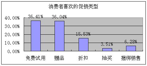 护肤日用品通常的渠道有:1、大商场 2、超市 3、专卖店 4、士多店 从消费者购买场所来看,商场占58.6%,超市占31.3%。也就是在商场、超市购买婴幼儿护肤品的比例高达89.9%。这说明婴幼儿护肤品的渠道主要走商场、超市的路子。街边的小店给消费者的信任度不高。而婴幼儿日用品的专卖店由于范围不广,接触点比较少,所以还未成气侯。 (四)、促销方面: 2、对消费者的促销, (二)、消费观念和特征