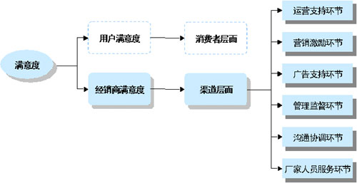 我们暂且抛开用户不说,单从经销商的角度解析一下目前市场的焦点之一:经销商满意度。 为什么要关注经销商满意度? 首先,经销商代理的是一个汽车品牌,经销商的行为直接关系到其品牌形象,提高经销商满意度有利于维护品牌形象; 其次,经销商将直接面对消费者,只有提高经销商满意度,才有可能提高最终用户满意度,从而有利于提高销售业绩; 第三,提高经销商满意度有利于发展厂家与经销商良好的合作关系,并最终实现双赢。 厂家需从哪些方面提升经销商满意度?慧聪以为可以从以下几个方面入手: 第一,运营支持环节,包括建店支持、金融/财务支持、产品支持、整车供货、销售与维修培训、备件供应、维修技术支持、客户管理支持等。 第二,营销激励环节,包括销售任务制定、返利政策、年终奖励等。具体而言,如销售任务制定是否贴近市场、返利是否及时、奖励是否公正等。 第三,广告支持环节,包括营销广告和服务营销广告支持,如厂家可鼓励经销商自己进行广告宣传、并提供适当的广告费用支持,增加服务营销广告投入等。 第四,管理监督环节,包括销售网点(布局是否合理、网点建设是否冒进等)、库存整车处理、车辆索赔(如厂家与经销商对索赔件的鉴定标准是否一致、索赔手续是否便捷等)。 第五,沟通协调环节,如信息反馈渠道是否顺畅、能否听取经销商合理建议等。 第六,厂家人员服务环节,包括服务态度、业务水平等。 确定了涉及经销商满意度的几个环节后,就可以开展经销商满意度调查,并根据调研结果对症下药:继续保持优势环节、重点改进问题环节。 满意度模型(本模型侧重于经销商满意度)