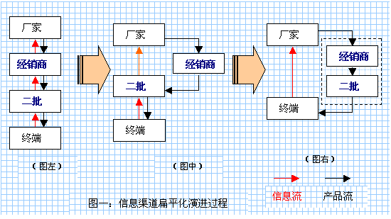 渠道先行?还是品牌先行?业内目前讨论的结果让渠道先行占了上风。在实践中,的确许多企业能够成功启动渠道,但问题是后行的品牌却迟迟不能获得,以致在渠道推力逐渐消褪的时候,不能及时提供通路流转的新动力,最终还是要失去渠道,品牌成了大多本土企业的致命伤。 企业如何才能在渠道建设的时候,让渠道与品牌一同成长,形成渠道与品牌相辅相成,共同成长,进入良性循环的成长阶段? 品牌化渠道建设可以使然。 (一)物流渠道扁平化和信息渠道扁平化 品牌化渠道的核心思想就是让渠道成为塑造品牌的工具,或者说让渠道在自身成长的过程当中最大程度地促进品牌的形成。 要达到这个目的,最重要的是要能更有效的借助或者整合渠道资源,与目标消费者进行有效的互动沟通,这还得从渠道扁平化谈起。 众所周知,企业内部以及企业与外部环境之间存在着三大循环,即:信息流、资金流、和物资流。在企业开拓市场初期,企业的三大循环依循着同样的轨迹而重合(如图一左),随着渠道的逐渐成熟,信息流与产品流逐渐分离,而资金流几乎总是与物资流的路径相逆,在此不再赘述。 因此,渠道扁平化可以解构为物流渠道扁平化和信息渠道扁平化,其中,渠道的信息流是由下而上,从消费者流向厂家,信息流的效率是品牌建设的关键,也是在知识与信息时代决定企业的成败的关键。 首先,企业营销的核心是满足消费者的需求,研发产品和塑造品牌就一定要以消费者为中心,这是企业建立品牌的基本前提条件。 要做到消费者导向,就要能时刻掌握消费者需求的变化、对品牌的理解与认知等信息,可直接告诉我们消费者的核心需求所在,以及需求取向的变化,品牌的定位是否偏离此需求,以及这种需求已经被满足的程度。在瞬息万变的竞争时代,谁能及时、准确地把握这些信息,才可能在产品研发和品牌传播上技高一筹。确保市场策略以及品牌策略能够顺势而变。 再者,我们也深刻的认识到,在市场竞争日趋激烈的今天,企业之间的竞争在更大程度上是运营管理效率方面的竞争。如何将信息技术有效的应用到企业渠道物流管理方面,并以此为基础建立起企业的竞争优势,是当前中小企业面临的最紧迫的问题之一。 比如,直接通过终端的定单,进行市场需求量的预估,比传统的从终端到二批、再到经销商和厂家的订单信息传递的准确度更高,也能有效规避所谓的渠道“牛鞭效应”,以市场需求为推动的生产计划就更加科学,企业运营效率和资源的配置效率也无疑会大大提高,如表现在对市场即时反应、物流效率的提高和配置服务水平的提升等诸多方面。 最后,信息渠道是员工市场动作执行效果反馈的重要渠道,譬如绩效指标的完成情况,以及诸如此类的关于市场策略执行情况等等的控制信息。 而信息渠道越扁平,不仅获得信息的效率会大大提高,也会因为传达的层级减少,可以在减少信息过滤和信息失真概率的情况下,提高信息获得的实效性,更能提高企业对市场的快速反应能力。 但是并不是所有的企业都能够建立消费者导向的营销体系,或者确切地说,在每个企业消费者(顾客)导向的程度是不一样的。 因为要形成消费者导向的营销体系从图示当中不难看出,在企业深度分销演进的不同阶段,企业获得信息的效率是不一样的,分销重心越往下沉,则企业与目标消费群体的互动与沟通的机会越多,所掌握的市场信息的真实性与实效性就越高。 一些人对渠道扁平化的认识存在着一个误区,即认为微利是推动渠道扁平化的主要原因,因为微薄的渠道利差已经无法支撑层级的渠道结构,从而提出要削减渠道层级,将渠道扁平化,以增加渠道中间商的渠道利润,增加渠道的推力。 其实,细细分析一下,这种理论的逻辑方法是根本站不住脚的。当市场在逐渐成长的时候,客户数必然越来越多,要管理好这些客户,意味着管理者的数量要随之成比例增加,管理的层级也应该增加,如果在这个时候,削减层级,无疑使渠道管理的业务人员或者中间商的管理幅度以更快的速度增加,一旦管理幅度增加的速度超过管理人员的能力的提升,很容易将管理者的管理效率降低,甚至成为无效管理,其后果会导致渠道管理秩序更加混乱不堪。 从另外一方面来看,企业有效增加管理幅度的基本方法通常有以下几种: 其一,通过培训与学习直接提高管理者的管理能力。 再者,提高作业的标准化程度,也就是提高任务的结构化程度,结构化程度越高,管理越程序化,而且管理者的例外管理的比重将会越低,管理效率也就越高。 其三,改善管理的硬件环境,比如,使用电脑、手机等管理工具,可大大节约管理者的管理时间,让他们能在同样的时间内承担和完成更多的作业任务。 不管是哪种方式来有效增加管理幅度,都意味者企业经营管理能力提升到一定的层次,达到集约化,规范化管理的程度。 而一个处于创业阶段的企业,规模扩张速率通常保持两位数字,企业的管理常常处在变革的过程中,业务流程会因为组织规模的膨胀而经常调整,人员也会因为组织架构的变化而不断流动,非常缺乏稳定的事务型管理制度约束,由此可见,企业在创业初期,要实现物流渠道的扁平化是不太现实的。 而且,从中间商的角度去看,厂家也是很难在短时期内让经销商或者二批按照自己的意愿将经营模式改变,即将自己的下游客户的重心下沉。 这是因为经销商的单