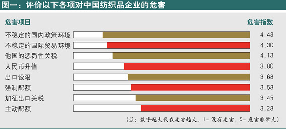“尽快解决”纺织品贸易争端,让纺织品企业获得相对稳定的贸易环境,要比“如何解决”更为重要 调查/本刊调研部 文/曾 兰 随着商务部对出口欧盟的10类纺织品进行主动配额,中欧之间的纺织品贸易争端暂时偃旗息鼓,告一段落。但是,中国政府与中国纺织品的另一个重要出口市场美国的谈判仍在进行中(截止7月12日),中国纺织品出口美国的前景依旧不甚明朗。根据《中国企业家》杂志近期一项针对中国纺织品企业的问卷调查显示,对于纺织品企业而言,获得一个相对稳定的贸易环境,比讨论如何解决贸易争端更为重要。 不稳定的环境:中国纺织品企业的最大危害 对于中国纺织品企业而言,“不稳定的环境”是目前影响其发展的最大因素,这个“环境”既包括国内的政策环境,也包括国际贸易环境。根据此次调查的结果显示,在所有可能对中国纺织品企业造成危害的项目中,不稳定的国内政策环境以及国际贸易环境分别名列榜首和榜眼,根据加权计算,危害指数分别高达4.43和4.30,介于危害非常大和危害比较大之间(图一)。对于纺织品企业而言,不稳定的国内政策环境和国际贸易环境不仅让其生产具有不确定性,影响企业经营,还将令企业无法及时调整未来战略,进而影响企业未来发展。 在纺织品企业看来,“主动配额”目前对纺织品企业来说危害最小,危害指数仅为3.28。根据中国和欧盟签订的《中华人民共和国与欧盟委员会关于中国部分输欧纺织品备忘录》(以下简称《备忘录》),通过主动配额,5500家中国的纺织品企业已经获得出口欧盟的配额。此外,加征出口关税也是纺织品企业可以接受的限制出口的措施之一,在纺织品企业看来,其对企业的危害程度也较小,危害指数仅为3.45。但无论中国政府未来将如何解决与美国以及其他国家在纺织品领域的贸易争端,对于纺织品企业而言,尽快解决纺织品贸易争端似乎比如何解决更为关键。 美国市场更重要 欧盟以及美国市场在中国纺织品贸易出口中具有举足轻重的地位。根据中国纺织服装对外贸易报告显示,2004年中国出口美国和欧盟的纺织服装占到全部出口的30%,此次调查的结果同样印证了这一点。分别有高达72.50%和62.50%的被调查企业承认,欧盟和美国是其最主要的产品出口市场(图二),而且有近八成接受调查的纺织品企业承认,美国以及此前欧盟对中国纺织品出口设限对本企业影响严重。 如果中美谈判失败,中国的纺织企业将如何应对?根据此次调查的结果显示,被调查企业认为最好的解决方案是开拓新市场,比率高达55.88%。在被调查纺织品企业看来,俄罗斯及周边地区将是其未来比较关注的产品市场,有40%的被调查企业将在未来3-5年重点开拓这一区域市场(图三)。 是否需要以牙还牙? 仅有大约31%的被调查企业对于纺织品配额取消之后可能遭遇的贸易壁垒进行了“比较充分”的准备。如何应对他国的贸易制裁?根据调查的结果显示,八成被调查企业支持中国政府对于他国的贸易制裁行动采取报复性措施。其中,认为贸易制裁和摩擦会削弱中国纺织品在国际市场竞争力的被调查企业态度更为强硬,持这种观点的所有被调查企业都支持政府对他国的贸易制裁采取报复性措施,甚至升级为贸易战。 但是贸易战并不能从根本上解决中国纺织品在国际市场上遭遇的贸易壁垒问题。在被调查企业看来,产业升级以及提高产品的技术含量才是应对贸易壁垒的最有效途径。根据调查结果显示,大约75%的被调查企业将通过产业升级的方式应对贸易壁垒,此外还有64%的被调查企业准备通过提高产品的技术含量的方式应对贸易壁垒(图四)。 在被调查企业看来,主动减少出口并不是应对贸易壁垒的最有效措施。根据调查结果显示,仅有大约21%的被调查企业将通过主动减少出口的方式应对贸易壁垒,排在所有有效措施的最后一位。开拓国际市场对于中国企业,尤其是纺织品企业而言,已经是大势所趋,即使是频频遭遇贸易壁垒,中国的纺织品企业也不会通过减少出口的方式避免贸易摩擦。 高度赞扬政府表现 值得一提的是,尽管纺织品企业认为中欧签署的《备忘录》对于改善中国纺织品的出口环境所起到的作用仅仅是“比较大”,对于新协议本身也有近1/3的被调查企业感觉“一般”,但是对于中国政府在这次解决中欧贸易争端中的表现,纺织品企业却表示出高度赞扬。 根据此次调查的结果显示,有约九成的被调查企业,对于中国政府解决与欧盟和美国纺织品贸易争端的态度表示支持,其中42.5%的被调查企业表示“非常支持”。而且,有八成被调查企业肯定了中国政府在本次纺织品贸易争端中的表现,其中认为中国政府表现“非常好”的被调查企业比例为32.50%。 不论中美谈判结局如何,纺织品贸易市场如何风云变化,中国的纺织品企业仍然对未来充满自信。有近七成的被调查企业仍对本企业下半年的经营情况以及中国纺织品企业未来的发展前景持乐观态度。 图四:中国纺织品应对贸易摩擦的有效措施 调查说明 本次调查通过问卷方式进行。从6月15日开始,本刊通过传真以及电邮方式向约600家中国纺织以及服装生产企业发送了调查问卷,截至7月7日,共收到回复问卷40份。 |