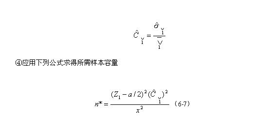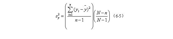 这里 n=样本容量 yi=对样本中第i个元素的某个特征的测量值 y=估计的平均值(总体平均值的无偏估计量) S2y=估计的样本方差(总体方差的无偏估计量) 一个估计的总体参数(例如,一个平均值或一个比例)的可靠性指它的再现性——一个总体参数的估计值在给定容量的不同样本中如何重复出现。假定没有测量误差,总体参数的估计值的可靠性能以标准误来判断。例如,样本平均值的估计的标准误以下式给出 与样本平均值相关的估计标准误越小,样本估计值的可靠性越大。 一个估计值的标准误能用于形成对于总体估计值的置信限制。为了构造置信区间,我们对于样本估计值的抽样分布必须做出一定的假设。对于足够大的样本容量(例如说n>30),样本估计值(例如平均值或比例)的抽样分布接近于正态分布,正态理论可用于为所估计的未知总体参数构建置信区间。例如,对于真实的总体平均值的一个适宜的百分之100(1-a/2)的置信区间是 出现在(6-4)中的所有符号,除了t,前面都已经定义,符号t指学生氏t-分布。我们用t-分布代替标准正态z-分布是因为在大多数情况下总体方差是未知的。t的值在学生氏t-分布表中n-1自由度中读取。如果样本容量大于30,那么t的值与在相同显著水平上从标准正态表中读取的z值相同。 前面这些公式严格应用于目标总体无限大的情况。当目标样本相对于目标总体较大时,这些公式将高估总体参数(平均值或比例)的方差(标准差)。无论何时目标样本占目标总体的10%至20%或更多,就应使用修正系数。有限总体修正系数(fpc)以()给出。fpc修正的方差公式是