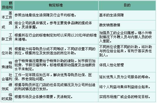 一、二线品牌导购员队伍普遍存在的问题 ⒈首先,是自信心不足。由于二线品牌在品牌建设方面的投入较为薄弱,二线品牌的导购人员在终端进行品牌推广时通常表现出自信心不足,有很多的导购人员将销售不好的原因归结于品牌知名度不高。 ⒉平均从业寿命短,人员流动较大。二线品牌由于管理、薪资体制、职业发展空间等因素的影响下,导购员在一个品牌的平均从业寿命较短,一般而言平均寿命在一年左右,人员流动率较一线品牌频繁。 ⒊与一线品牌相比,二线品牌的收入明显偏低。由于品牌知名度、市场推广力度、市场占有率等因素的影响下,二线品牌的终端销售与一线品牌的终端销售在量上的明显差距,销量直接引发导购员收入上的差距。 ⒋吸引同行业的优秀导购人员加盟较难。由于受二线品牌平均薪资偏低的瓶颈的影响,若无特殊的政策是很难吸引同行业优秀人才加盟公司,因为在某种意义上薪资是优秀人才流动的风标。 ⒌后备人才储备困难。受销量、品牌的知名度、培训管理体制的影响,二线品牌的终端导购人员备人才匮乏。一般来说,二线品牌很少主动去组建后备人才队伍,缺少健全的后备人才培养机制。 二、二线品牌导购员管理存在的“软肋” ⒈偏重人性化管理,忽视量化管理。就二线品牌的操作体制和机构设置体系来看,二线品牌的人终端人员及终端管理人员较少。在管理上偏重于人性化管理,即使有量化考核的指标,但往往由于考虑到人力、导购员收入等因素,无法对管理工作进行细化考核,对终端导员人员存在放任自由的现象。 ⒉重激励,轻惩罚。一般而言,二线品牌终端导购人人员的收入较低,为了激励导购员的销售积极性,二线品牌的激励措施侧重于正激励,较少进行负激励。二线品牌不敢轻易制定负激励的另一个原因是由于害怕导购人员流动,担心负激励政策不但没起到应用的规范作用,反而会激起导购人员的逆反心理,甚至造成导购人员过度的压力。 ⒊职业发展规划模糊。二线品牌由于机构高设置较为精简,内部可提供用来作为终端导购人员职业晋升的岗位较少,因此二线品牌较少进行导购人员职业发展规划。二线品牌许多优秀的导购人员侧重于通过外部寻求职业发展,从管理角度而言,良好的职业发展规划是延长优秀导购人员服务寿命的有效措施,因此对二线品牌来说,终端导购人员职业发展规划的设计尤为迫切。 ⒋采用粗放管理,缺乏精益管理。在终端管理上,二线品牌的业务员往往是身兼多职既是商务代表,又是人力资源主管;既是终端政策的制定者,又是终端政策的执行者……二线品牌管理层分工不细,职能交叉,由于管理上的先天不足,二线品牌很难进行精益管理,他们更“欣赏|”粗放管理。 ⒌缺少良好的培训机制。由于二线品牌人员较少,无法建立健全的培训体制,有的二级办事处根本没有对导购人员进行过系统的培训,新人招聘过来后,就给些产品的资料和企业的资料让其自己学习。由于缺少良好的培训体制,二线品牌的导购人员队伍素质参差不齐,很难组建成一支高效的终端战斗队伍。 三、二线品牌导购员的梯队建设 面对自身的先天不足,二线品牌要充分挖掘导购员团队的潜力,应重视对导购员进行梯队划分,进行分类管理,如由优秀导购员构成第一梯队,是终端销售的主力军;将有弱项的需要加强培训、引导的导购员划为第二梯队;第三梯队即是导购员的后备人才,这一梯队是导购人员的补充和新血。在进行导购员梯队建设时,除了导购员梯队划分管理外还该注意以下问题: ⒈组建一支高效能导购员梯队的关键是根据导购员梯队划分,制定合理有效的薪资体系。制定薪制体系注意以下事项: ①结合当地及行业的平均工资水平进行制定底薪,过高会造成经营成本偏高,过低导购员的积极性无法激发。二线品牌合理的底薪应是略高于一线品牌,从心理上加强导购员的收入安全感,合。 ②兼顾公平,效益优先,吃大锅饭不利于提高导购员的积极性和导购员梯队建设,在制定薪资体制时应考虑岗位与工资、 岗位与责任、 好店与差店等主客观因素,导购员的能力与薪水挂靠,有意识制造合理收入差距,不同梯队导购员的工资有所区别,鼓励后进导购员自发学习,努力向优第一梯队导购员靠拢。 ③合理薪资构成应充分均衡考虑,不能影响销售合力的形成。由于导购员归属的梯队不同,派驻商场的卖场环境及所处的战略地位不同,造成收入差距,在薪制制度上,应充分考虑照顾新人及弱势门店,稳定其心态,如设置新人保底工资及弱势门店专项奖励或补助。 ④外聘同行优秀人员与内部培养的优秀人员收入差距不能过大。很多二线品牌通过高薪从竞品“|挖”优秀人员,而忽视改善或提高现有内部优秀人员的待遇,直接导致内部优秀人员外流,造成捡了芝麻丢了西瓜,因此在制定外聘人员薪资时应均衡考虑内部第一梯队优秀人员的平均工资制定。 附:导购员薪制结构表: ⒉管理上应遵循适度压力,营造一张一弛的适度压力管理氛围。没有压力就没有动力,人只有在压力下才能激发潜能,要实现销售任务不但要明确销售目标,而且要给导购人员适度压力,才能营造完成销售的紧迫感。笔者认为二线品牌的压力管理应讲究一个度,不能重也不能轻,一线品牌讲究高薪高压力,而二线品牌过大的压力会造成人员过频繁的流动,不利导购员的梯队建设