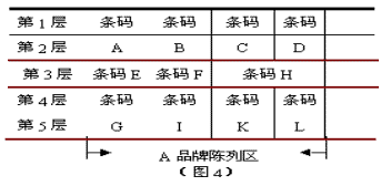 注:第1、2层看为第一层,第三层看为一层,第4、5层看为一层。 以该货架陈列多个条码时建议如下图: