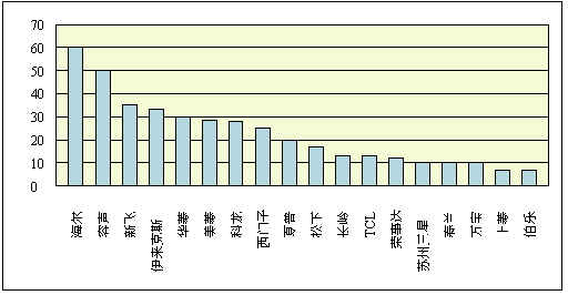 西门子在网点建设方面有一个良好的战略规划,在一个地区重点扶持一个点,时机成熟后再增加新的销售网点,所选的点基本是做一个活一个,走的是“以点带线,以线带面”的路线。 西门子重视网络质量还具体体现在两个方面: (1) 对网点的细心培育 销售人员经常深入终端市场与零售商进行广泛地沟通,听取他们的意见,及时解决他们在销售中遇到的困难和问题,在产品展示陈列、现场广告促销、及时补货等方面给予有力支持,处理好厂家与零售商的利益关系。不仅如此,还帮助零售商做市场,如分析消费者、提供有关市场信息、制定销售计划和策略、帮助他们提高经营水平。同时,也严格规范零售商的销售行为,用制度来管理,一视同仁、奖罚分明,避免了零售终端无序经营和乱价现象的发生。 这种市场培育的方式不仅大大提高了终端网络成员的积极性和对企业及产品的忠诚度,增强了他们对产品、品牌、市场的责任心,还使他们的营销水平和能力得到提高,行为更加规范,使西门子从点到面整个网络得以健康、快速、持续地发展。 (2) 零售业态的有效组合 目前,家电销售形态大致有百货商场、大型电器城、超市、品牌专卖店、小型电器店等。西门子根据企业实际能力、产品市场拓展的规划和一级市场的特点,大大减少了小型电器店的比例。 下图是总体铺货率前10名品牌对小型电器店的铺货率情况。