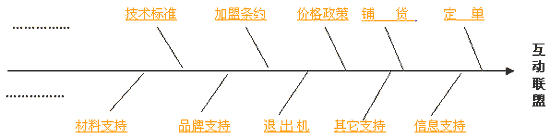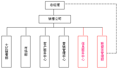 新的组织结构是在高科原有销售公司组织架构的基础上,新增信息服务中心和联盟体管理部两个部门。它们同销售公司内部其他部门平级,与其他部门之间的关系是协调、配合、团结工作的关系。这样在以信息服务中心为枢纽,以联盟体管理部为运作核心,其他相关部门进行配套运作的新型组织架够被确立。 其次,配合企业组织架够的完善,企业还必须积极明确构建“互动联盟体”运作的关键因素及其组合。在这个过程中,青禾为企业确立了包含联盟体运作中的技术标准、加盟条约、技术支持、信息支持、品牌支持、铺货、定单和退出机制等十二项关键因素,在对每项关键因素具体实施中的要求也进行了进一步地确立,从而为联盟体的具体运作非常明确的路径依赖。